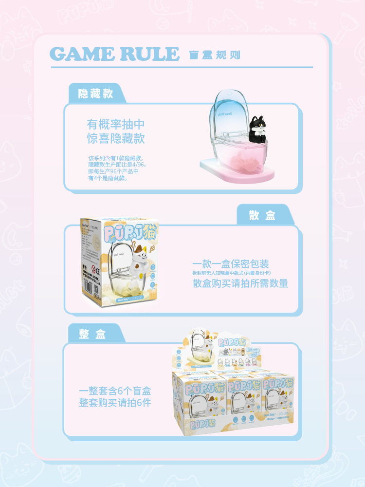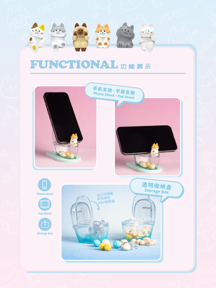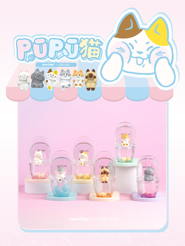 PUPU 고양이 화장실 시리즈 블라인드 박스 귀여운 젤리 투명 스태킹 장난감 다채로운 사이버 연예인 고양이 유행 놀이 장식품