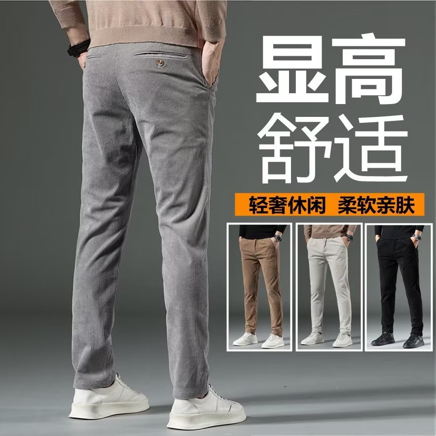 코듀로이 캐주얼 바지 남성용 가을과 겨울 두꺼운 캐주얼 간단한 솔리드 컬러 스트레이트 바지 남성용 세련된 하이 엔드 올 매치 롱 바지