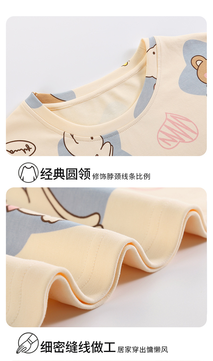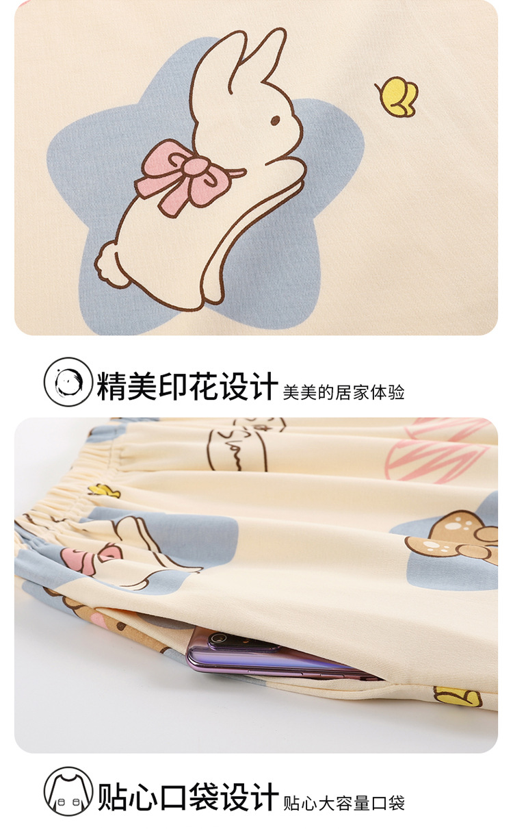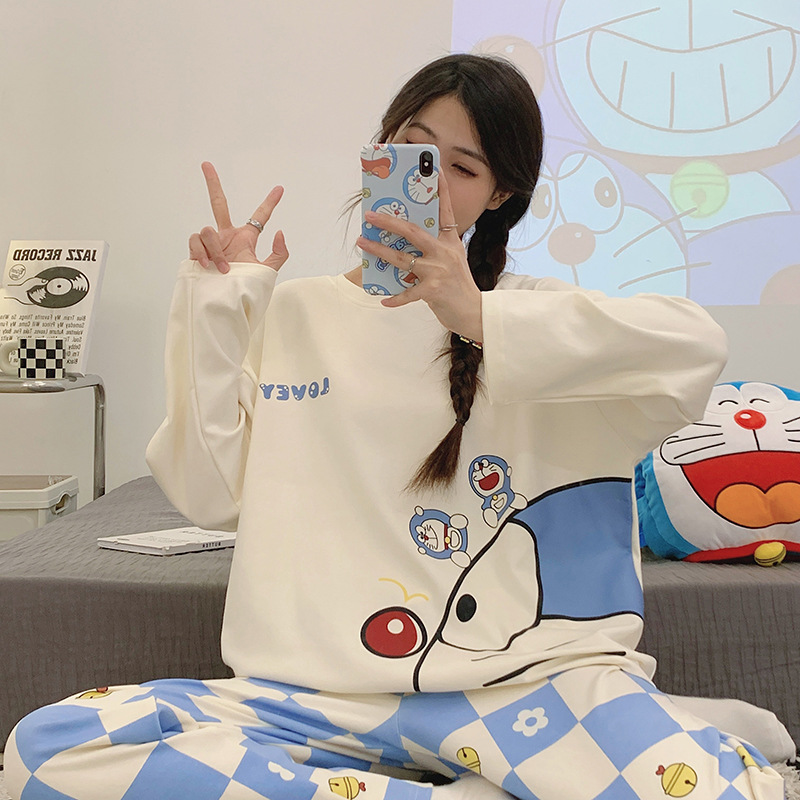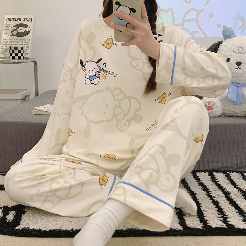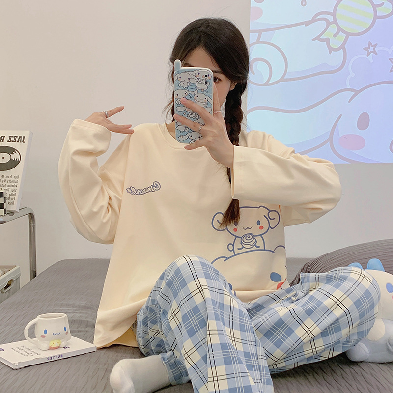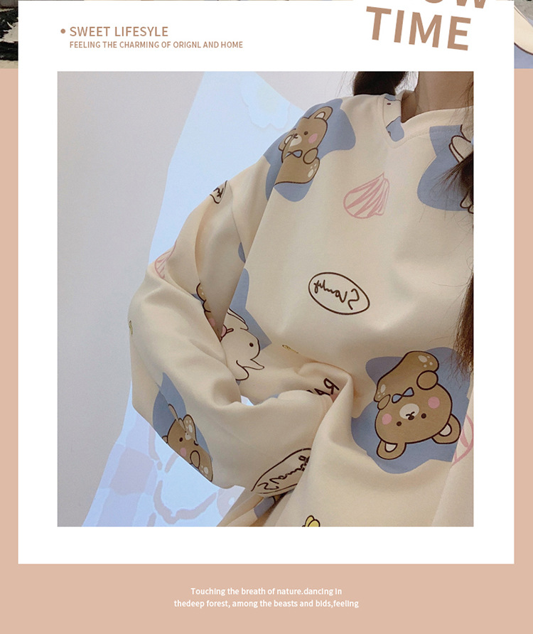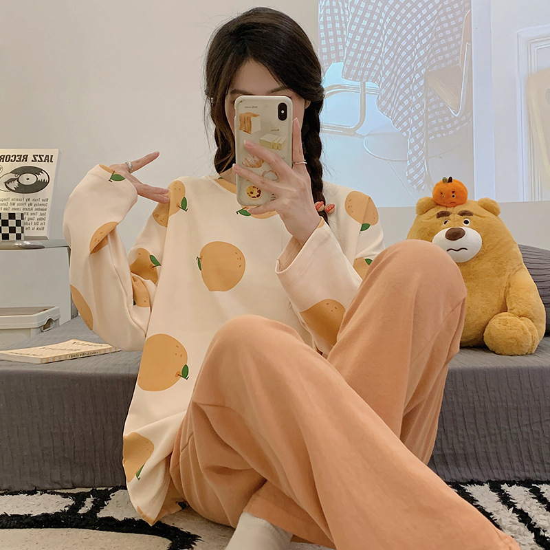 순면 잠옷 여성의 봄과 가을 긴 소매 바지 귀여운 만화 소녀 둥근 목 풀오버 겉옷 홈 의류 세트스토어 가기