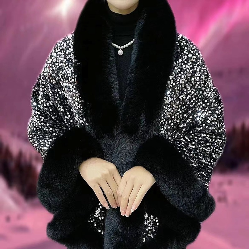 가을과 겨울 두꺼운 따뜻한 고급 기모 스팽글 모피 칼라 술 목도리 코트 레이디 기질 올 매치 느슨한 케이프