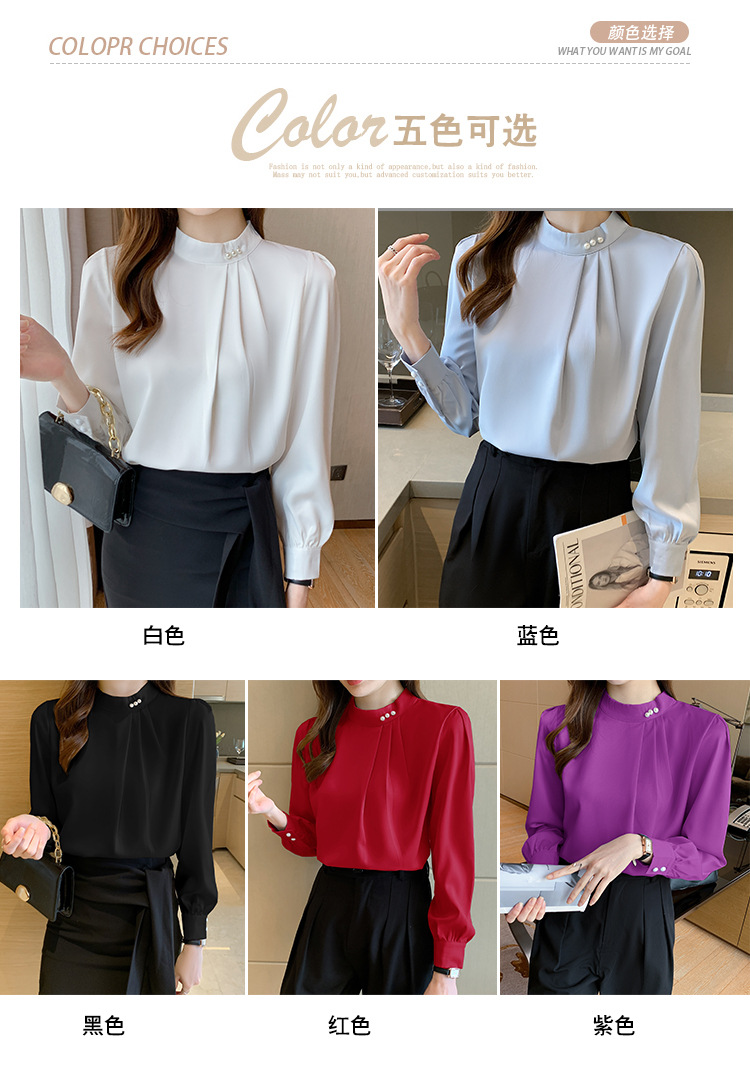 기모 새틴 셔츠 여성의 긴팔 서양식 구슬 바닥 셔츠 2022 가을과 겨울 디자인 감각 틈새 쉬폰 셔츠스토어 가기