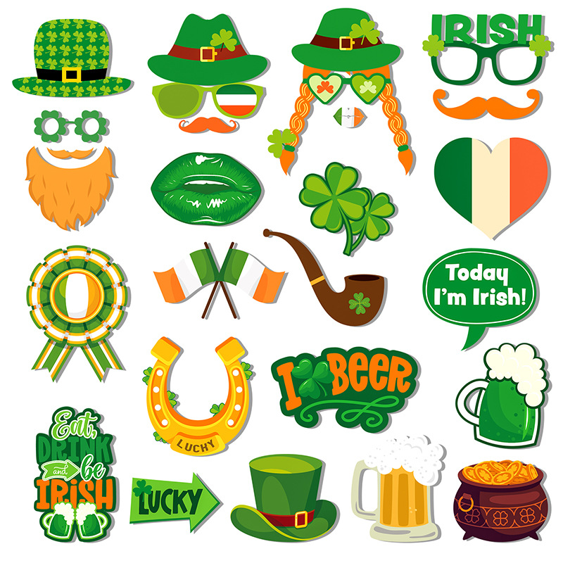 跨境圣帕特里克节拍照道具St. Patrick's Day舞会25pcs手持道具