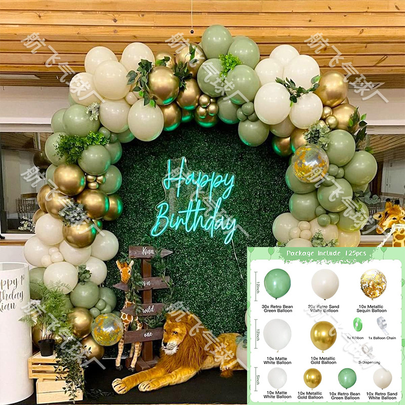 국경 간 아마존 결혼식 생일 풍선 장식 세트 야외 파티 아치 녹색 정글 풍선 도매스토어 가기