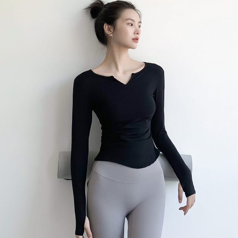 빠른 건조 옷을 실행하는 요가 최고 여성 스타킹 긴 소매 가을과 겨울 v-neck 스포츠 티셔츠 슬리밍 인터넷 유명 인사 운동복스토어 가기