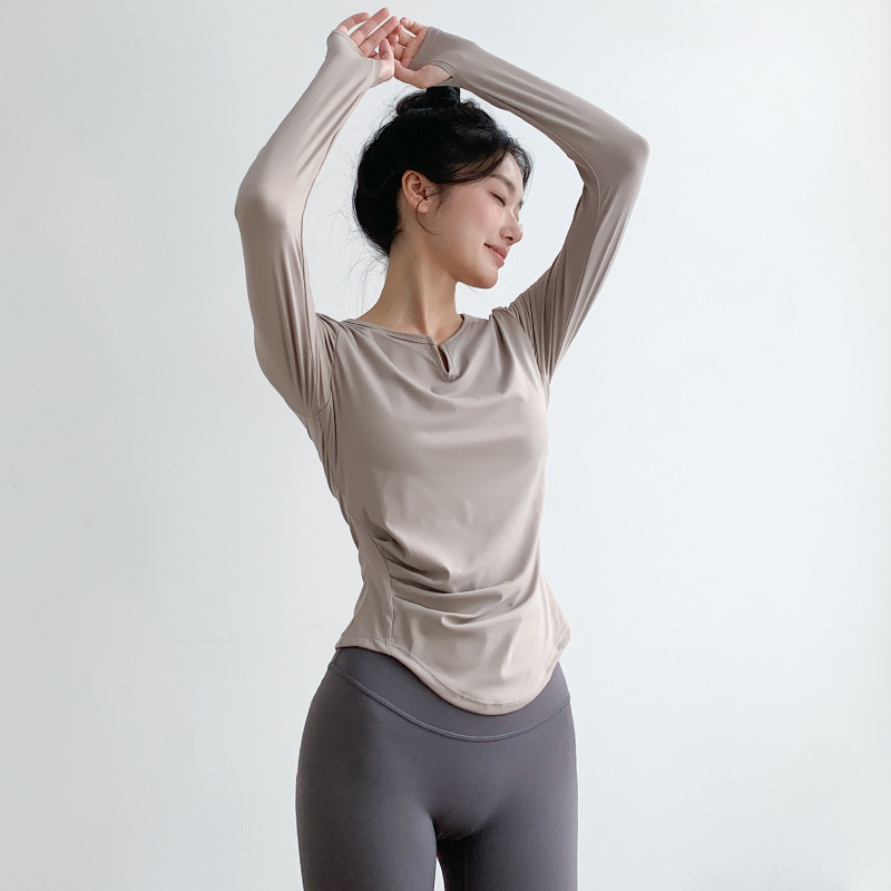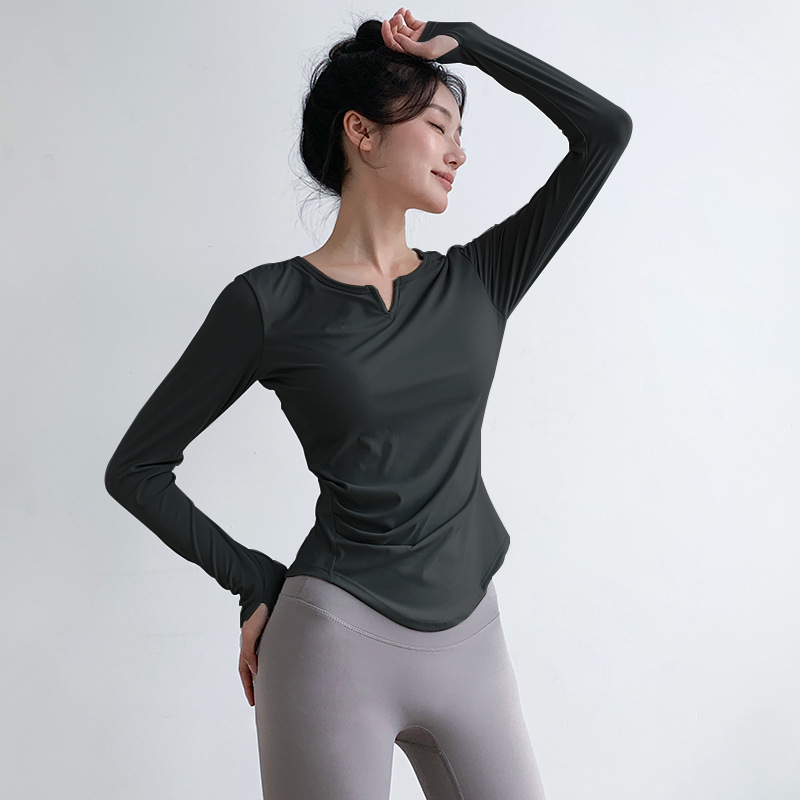 빠른 건조 옷을 실행하는 요가 최고 여성 스타킹 긴 소매 가을과 겨울 v-neck 스포츠 티셔츠 슬리밍 인터넷 유명 인사 운동복
