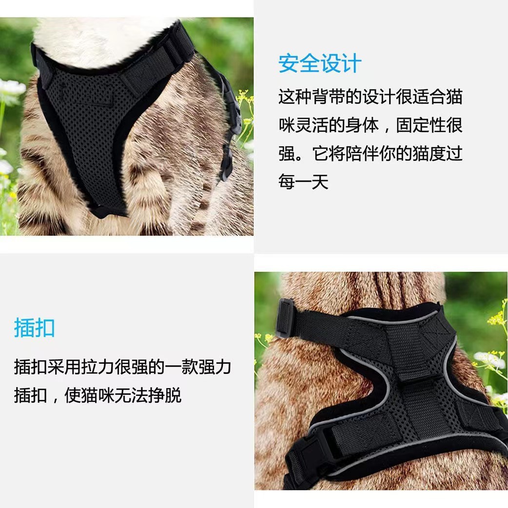 고양이 목줄 탈출 방지 조절 가능 고양이 목줄 조끼형 애완동물 하네스 여름용 신축성