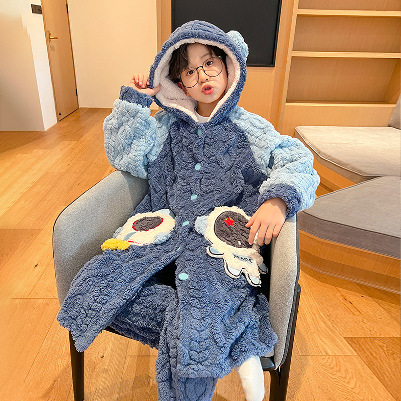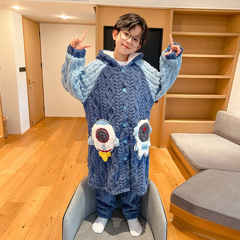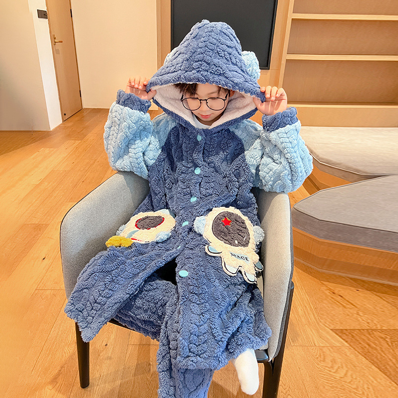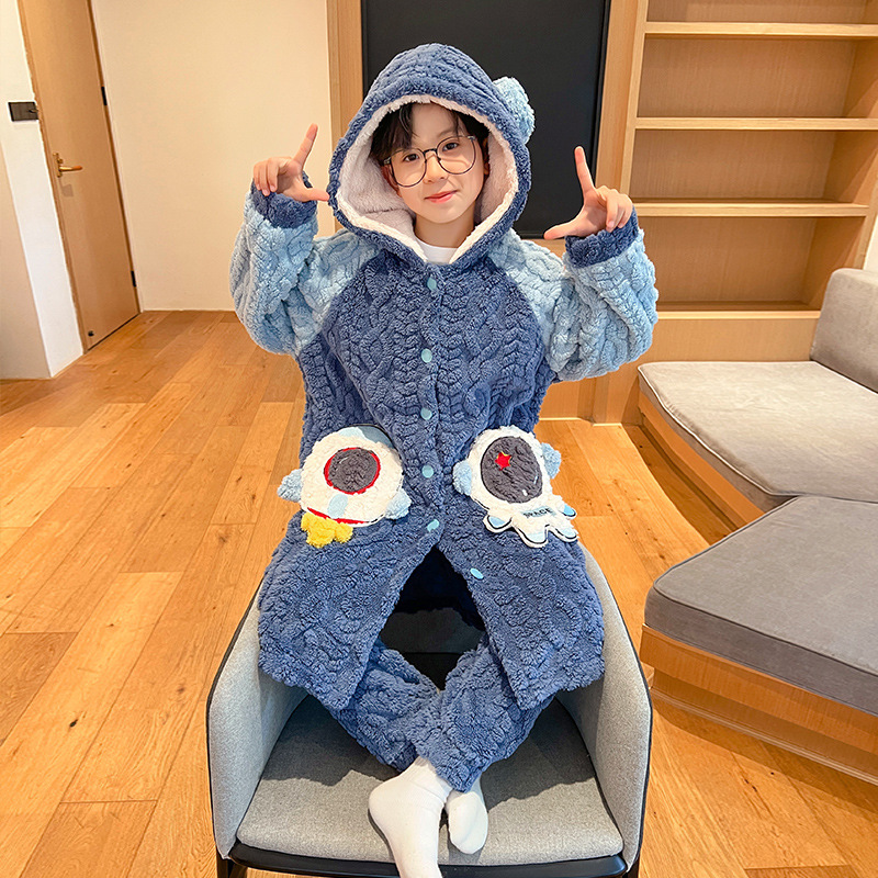 소년 잠옷 겨울 산호 양털 세트 큰 소년 만화 우주 비행사 어린이 플란넬 파자마 홈웨어스토어 가기