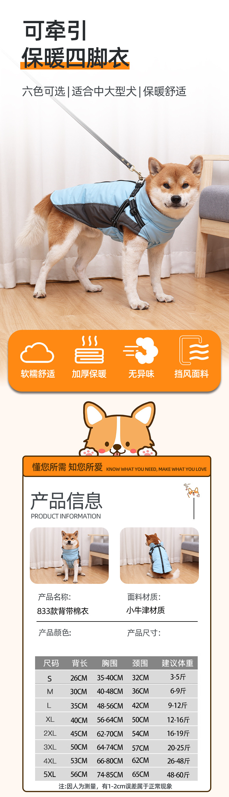 새로운 개면 패딩 코트 겨울 따뜻한 방풍 견인 야간 반사 조끼 국경 간 독점 애완 동물 용품스토어 가기