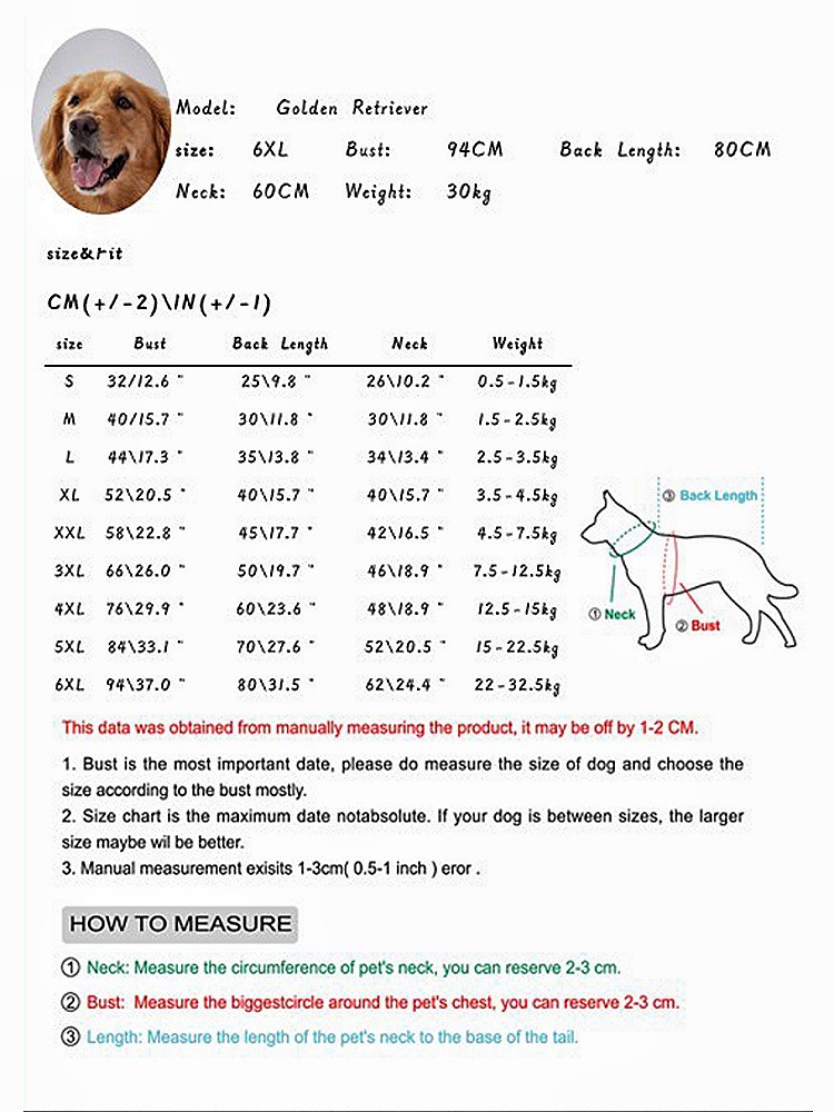 • 3XL (뒤 길이 50cm 권장 7.50 kg-12.50 kg