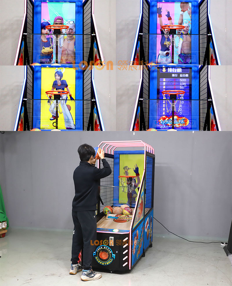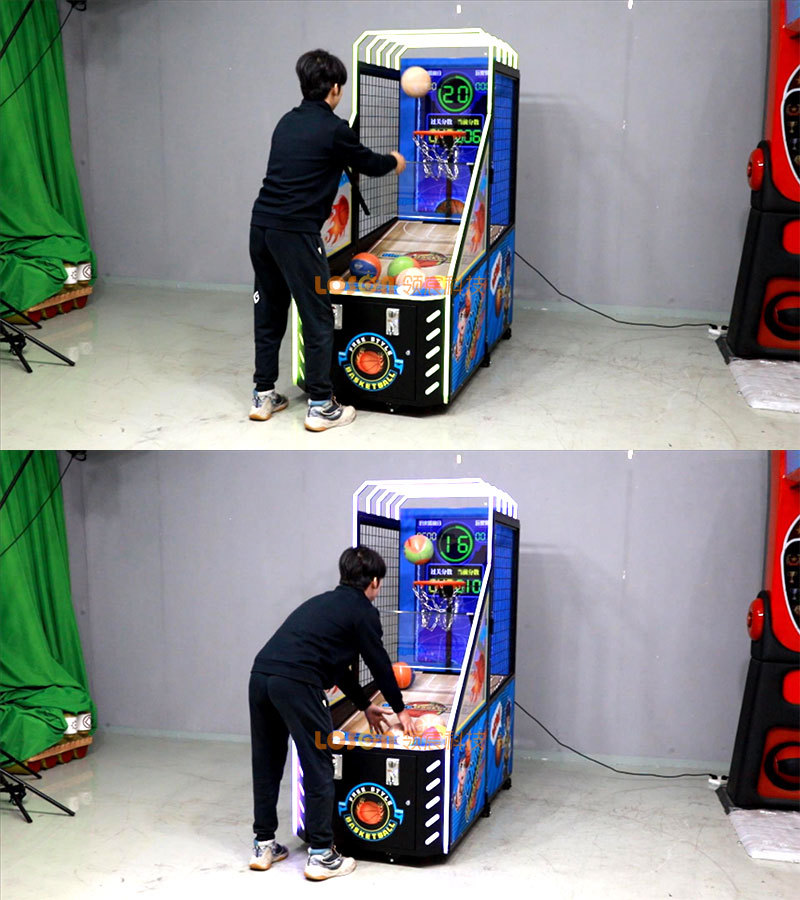 LCD 스크린 농구 기계 어린이 사이클론 슈팅 기계 럭셔리 성인 실내 전자 동전으로 작동되는 접이식 농구 게임 기계