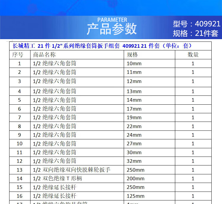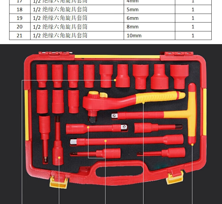 만리장성 세이코 21 조각 1/2 "시리즈 절연 소켓 렌치 세트 409921 21 조각 (단위: