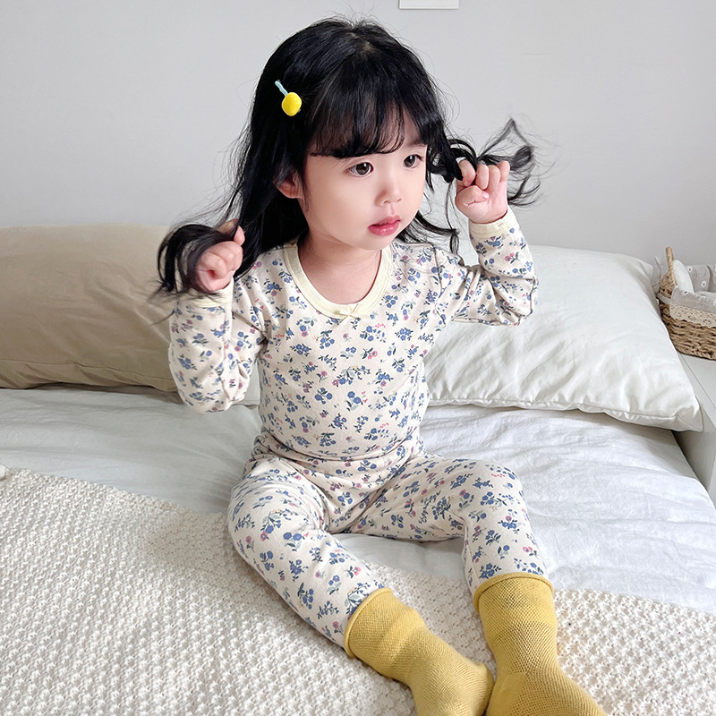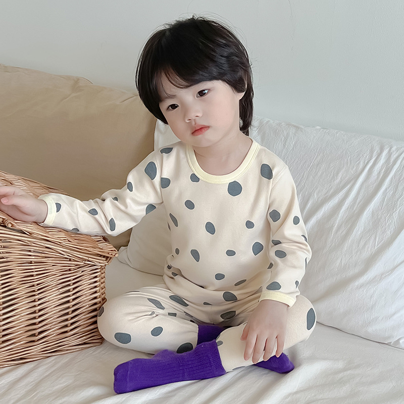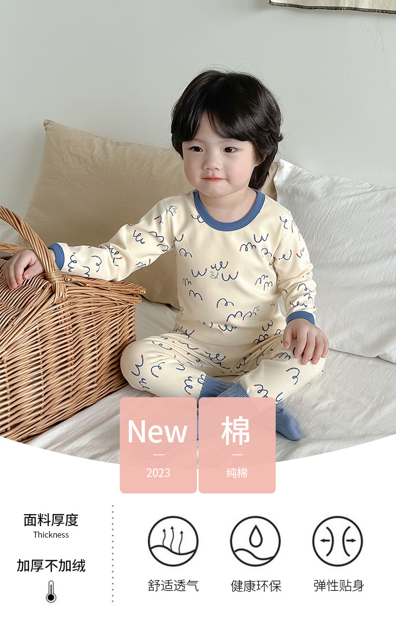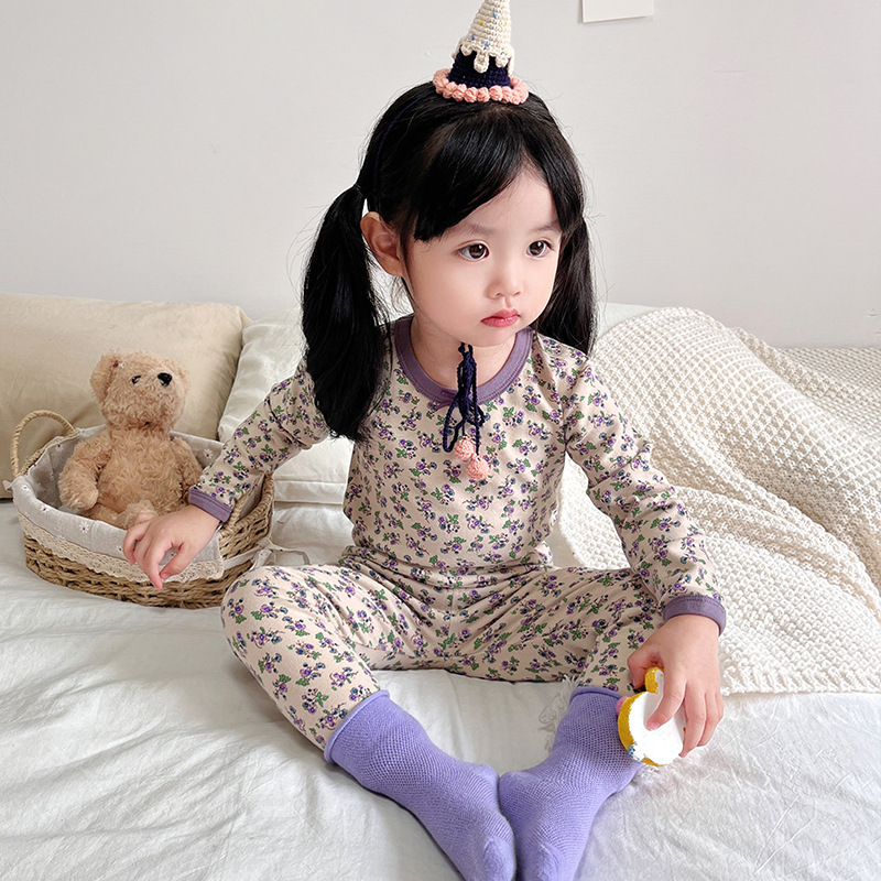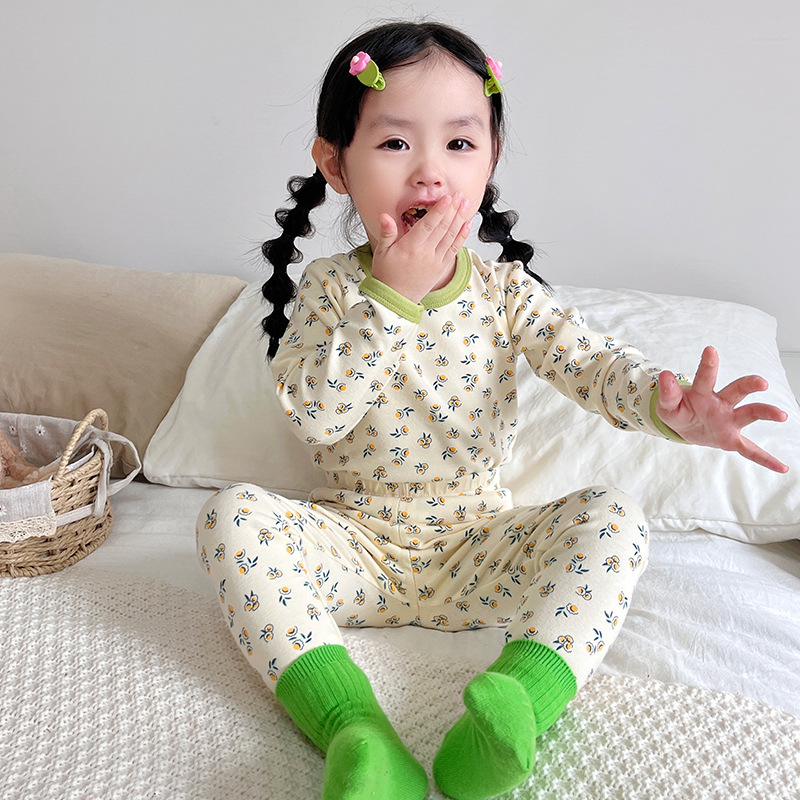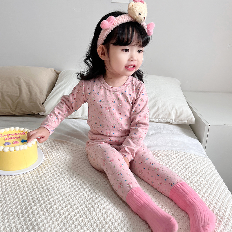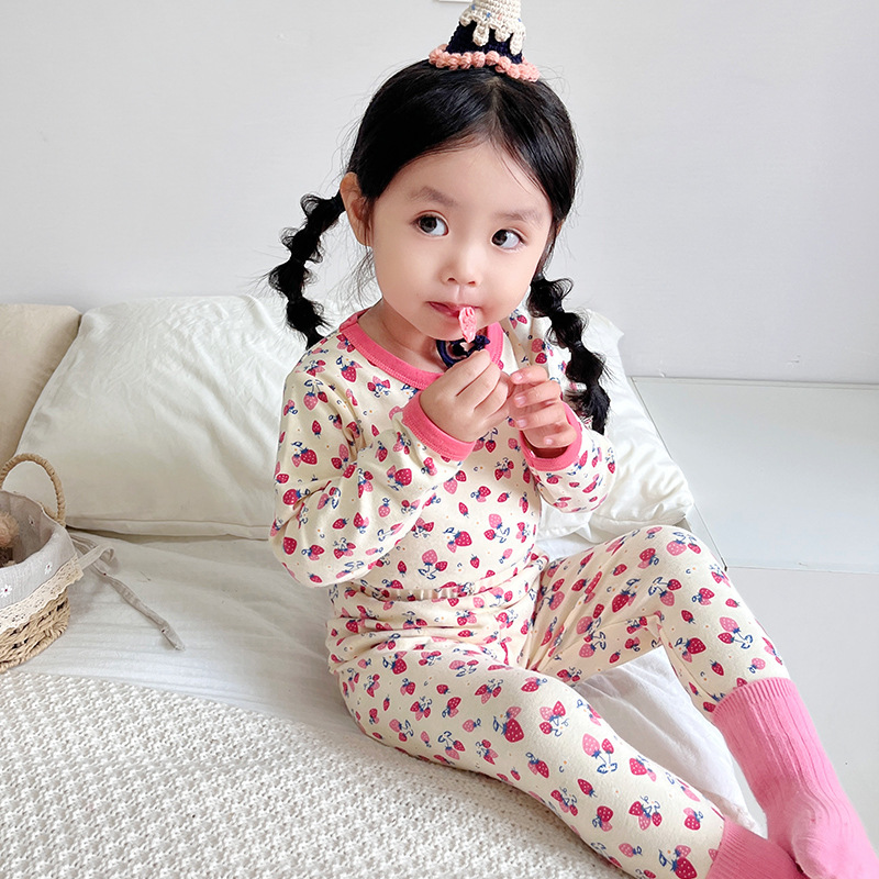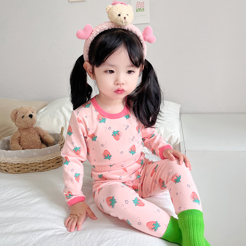 어린이 심장 2023 새 아기 열 속옷 어린이 면화 소녀 가을 옷 긴 바지 세트 소년 홈웨어스토어 가기