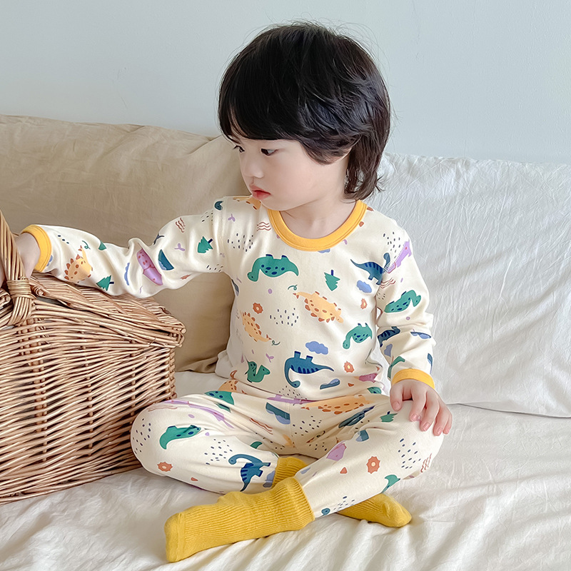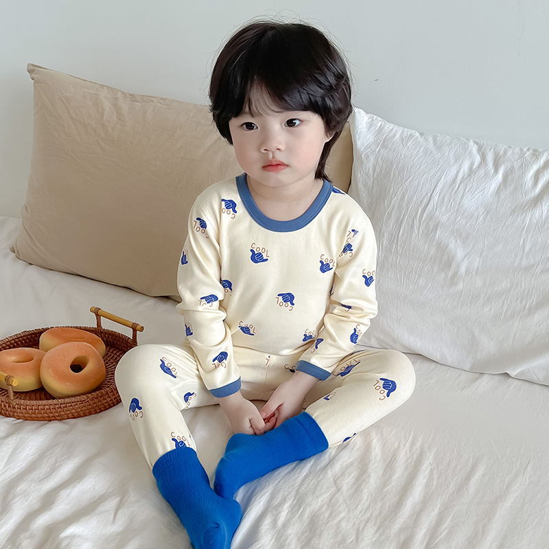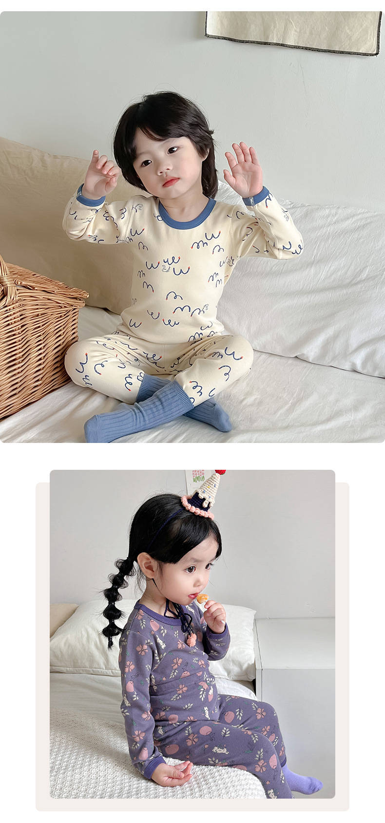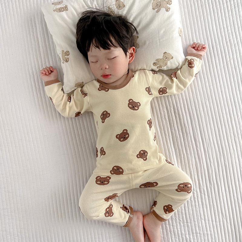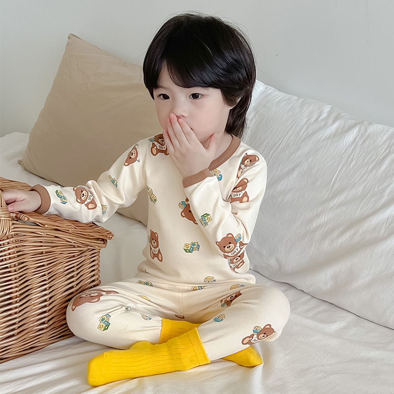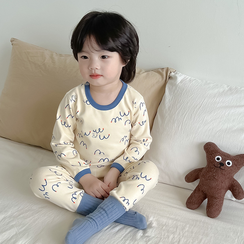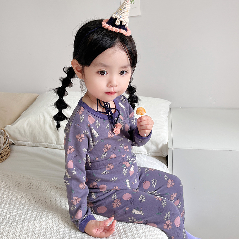 어린이 심장 2023 새 아기 열 속옷 어린이 면화 소녀 가을 옷 긴 바지 세트 소년 홈웨어스토어 가기