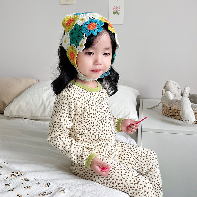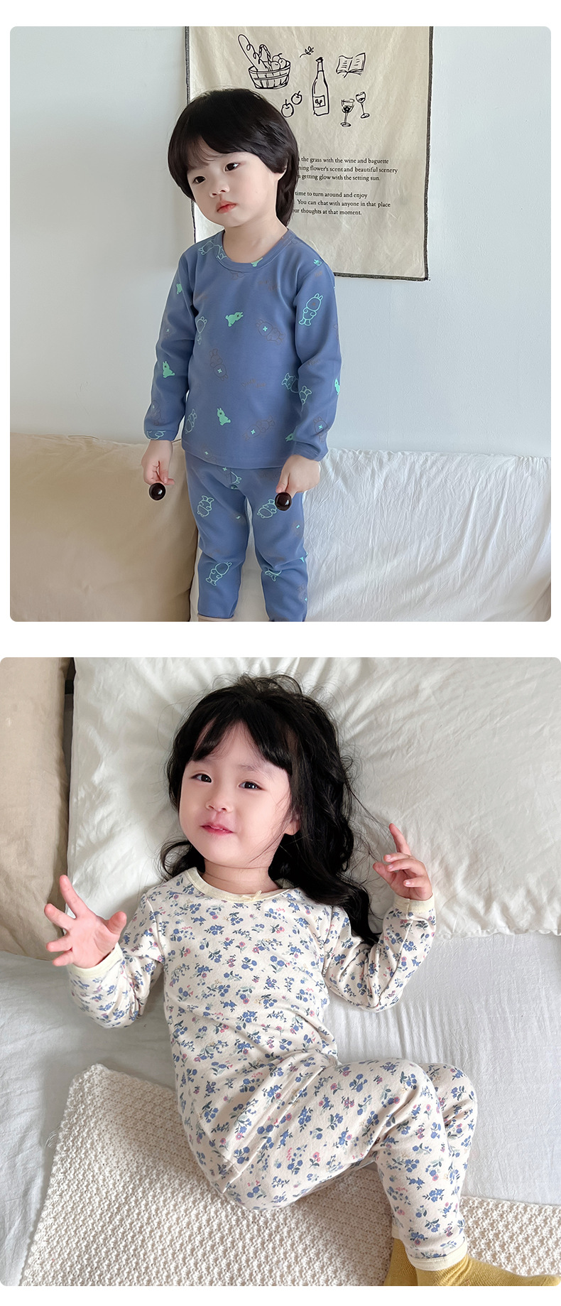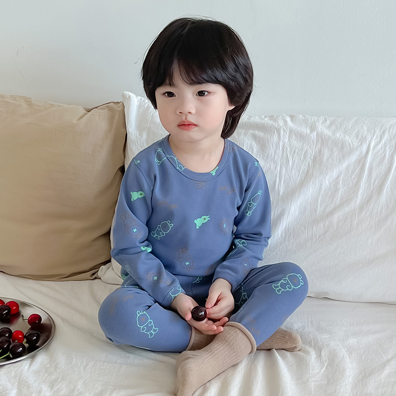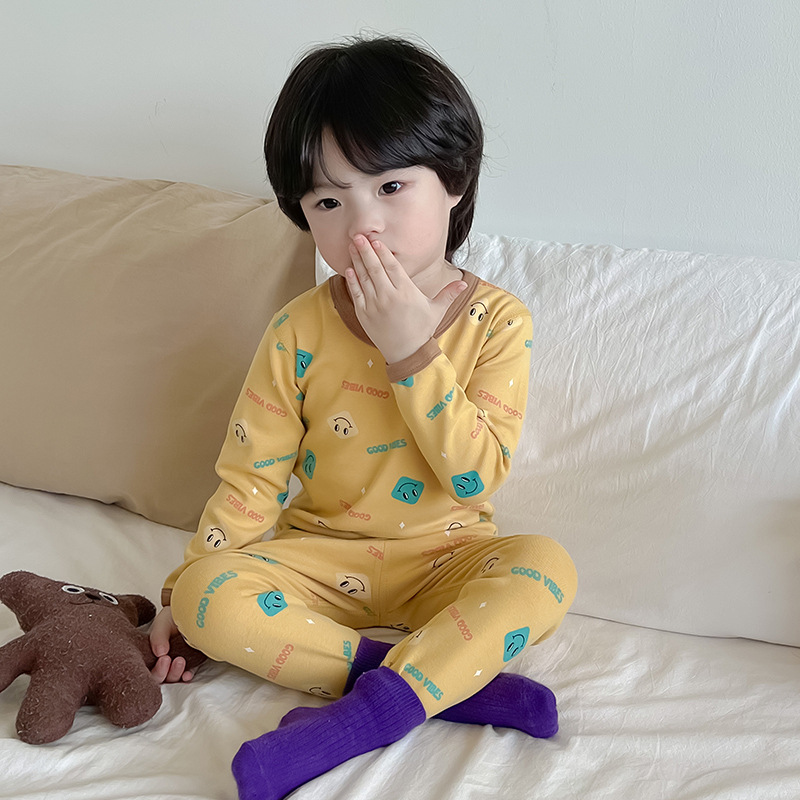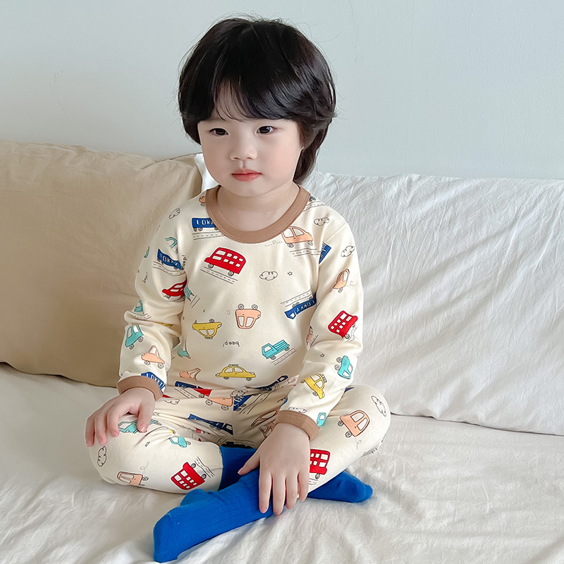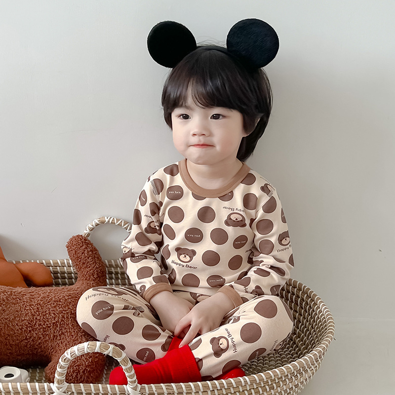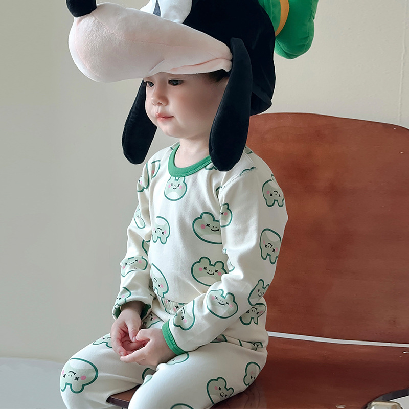어린이 심장 2023 새 아기 열 속옷 어린이 면화 소녀 가을 옷 긴 바지 세트 소년 홈웨어스토어 가기