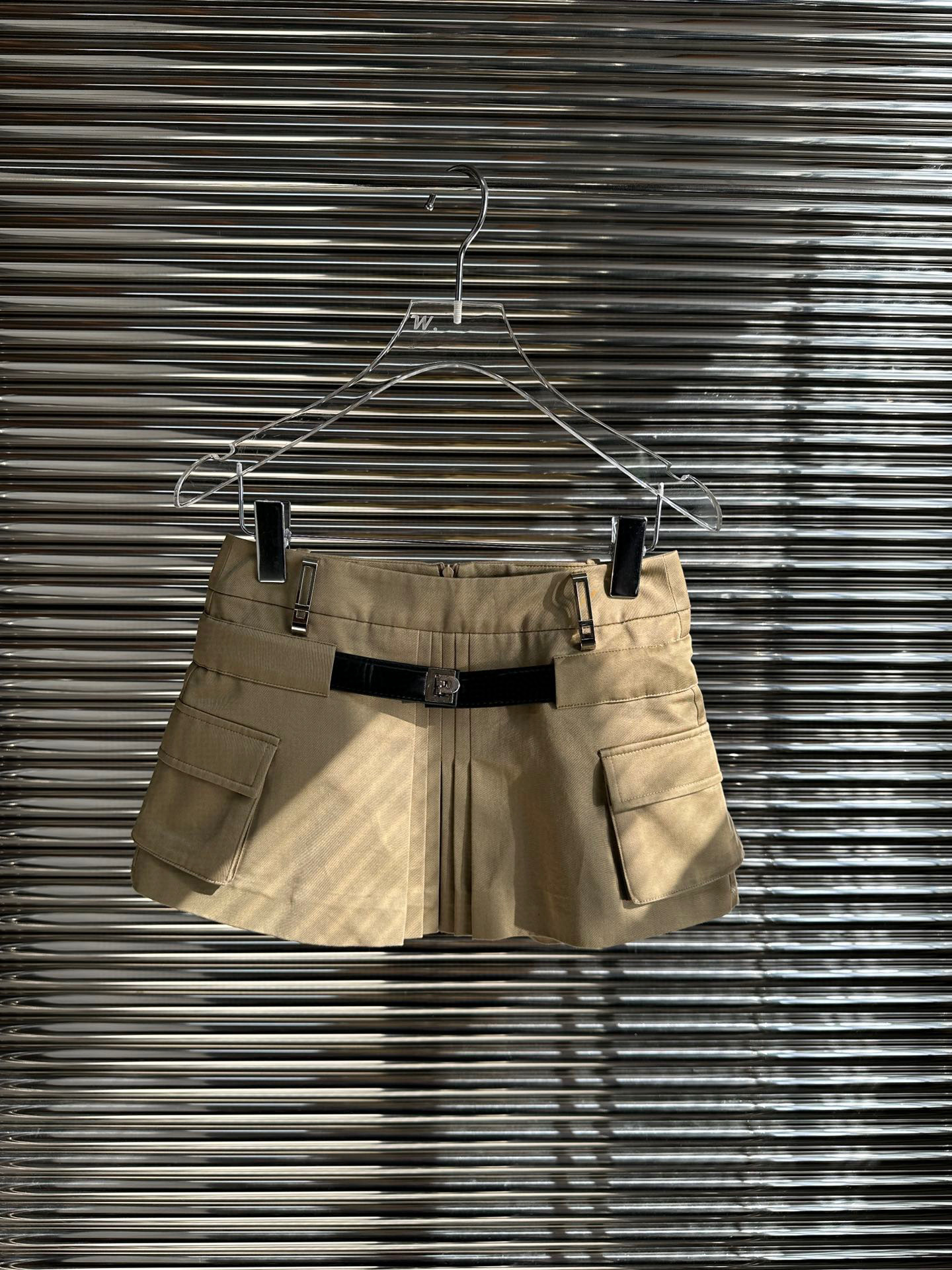 23 가을 겨울 디자인 대형 포켓 벨트 플리츠 스커트 초미니 A라인 스커트 섹시한 핫걸 여성스러운 핫걸 스타일