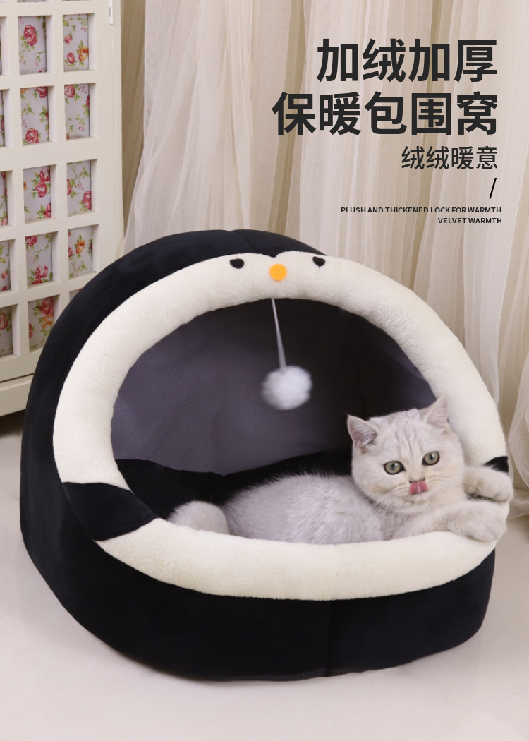 도매 고양이 둥지 개 둥지 토끼 둥지 겨울 사계절 보편적 인 작은 개 둥지 두꺼운 따뜻한 패드 반 폐쇄 애완 동물 둥지