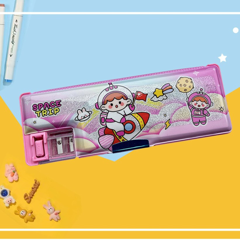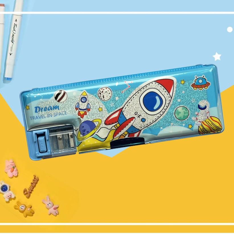 도매 만화 문구 상자 소년과 소녀 초등학교 학생 diy 다기능 연필 케이스 플라스틱 어린이 저장 연필 케이스스토어 가기