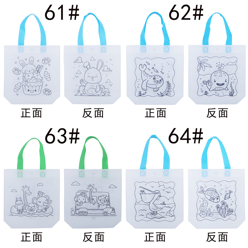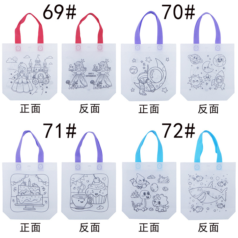 부직포 그래피티 가방 어린이 파티 DIY 수제 핸드페인팅 컬러링 페인팅 RPET 핸드백 CPCE스토어 가기
