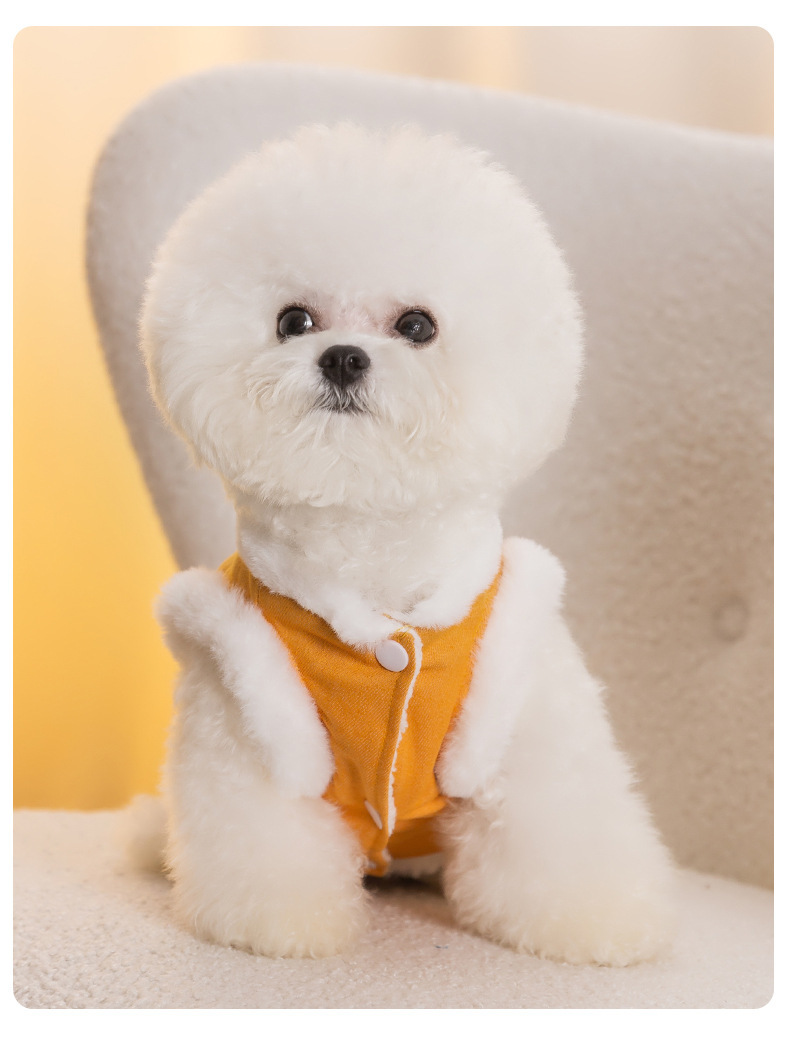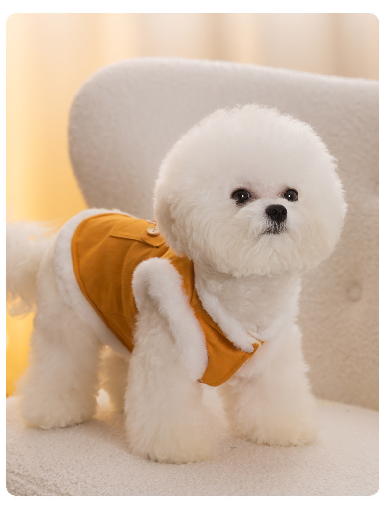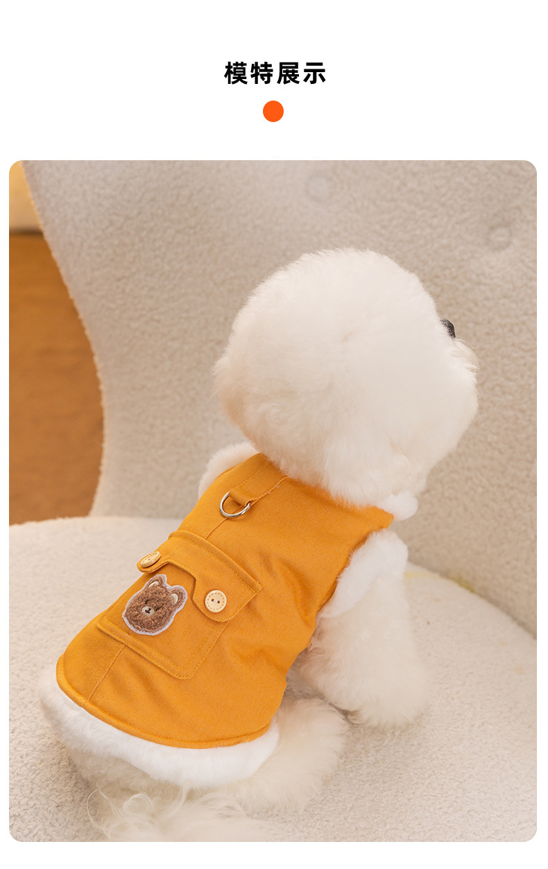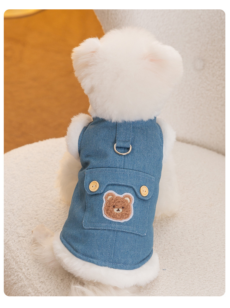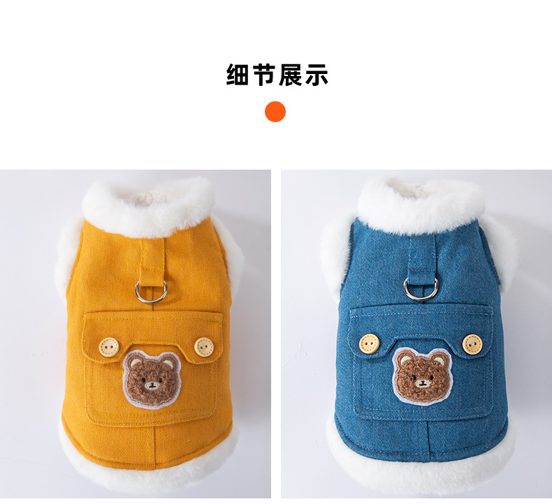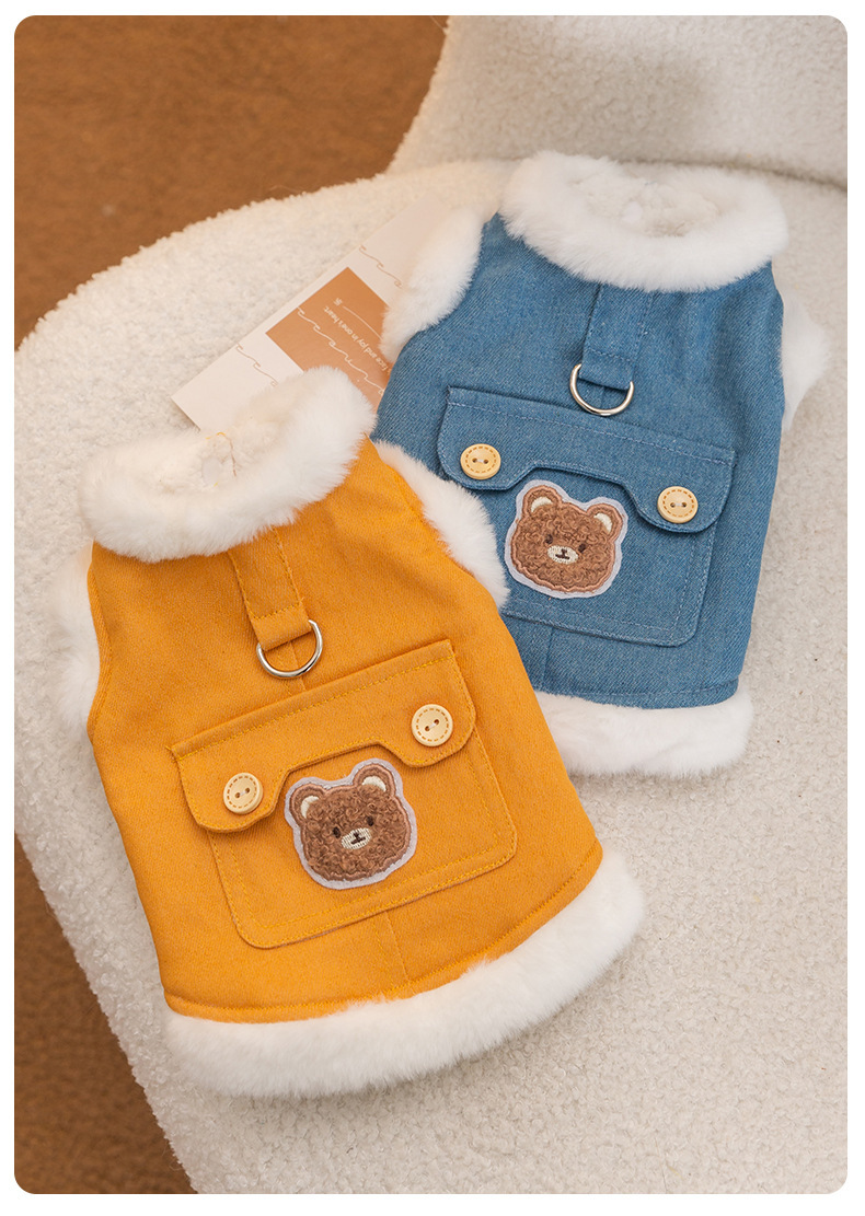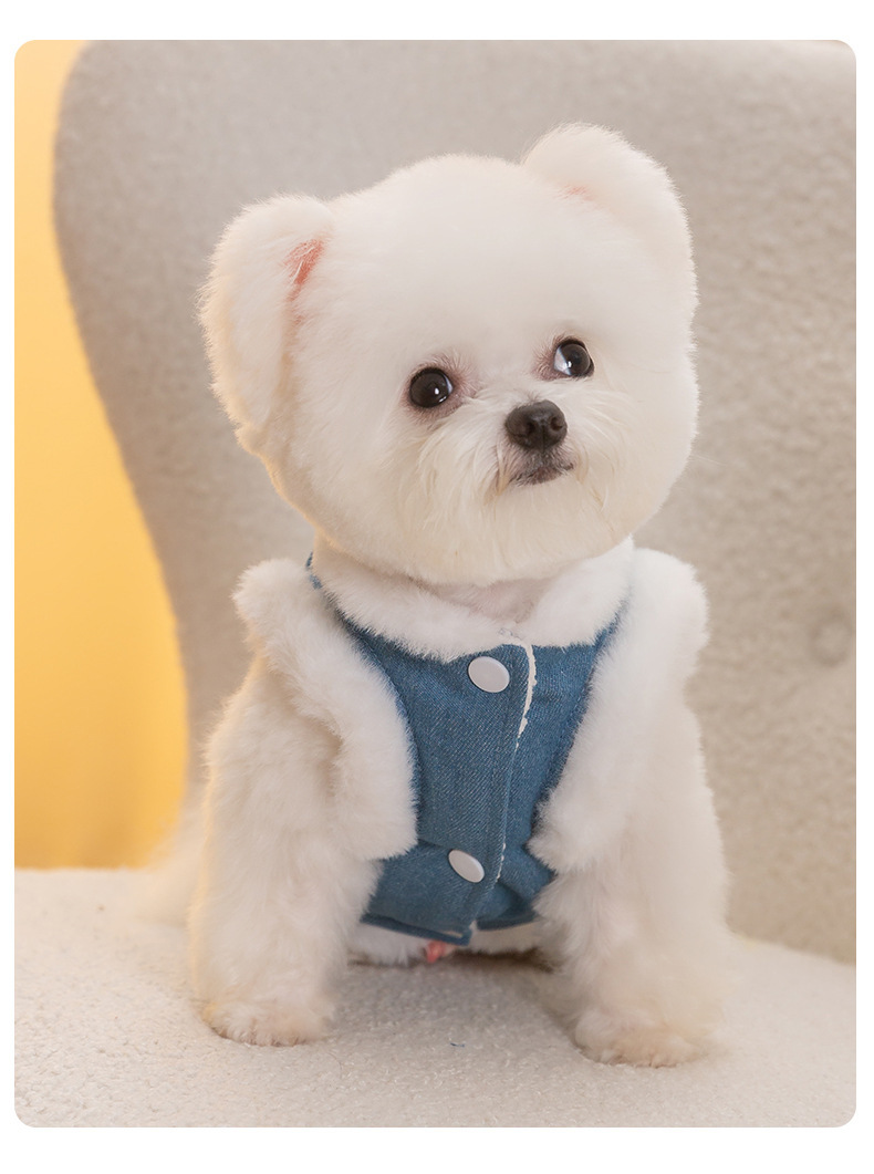 새로운 기모 따뜻한 모조 토끼 모피 가장자리 개 옷 가죽 끈 조끼 작은 개 곰 애완 동물 의류스토어 가기