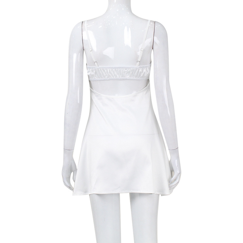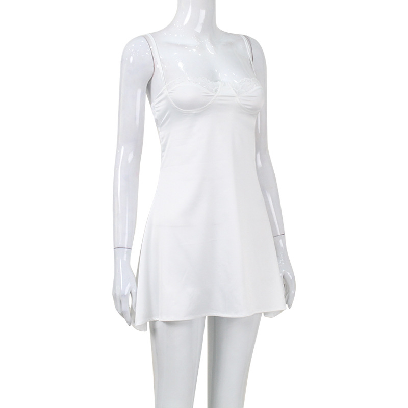 유럽과 미국의 대외 무역 여성 로우 컷 짧은 레이스 바느질 섹시한 스파이스 소녀 캐주얼 홈 높은 허리 슬링 원피스 트렌디스토어 가기