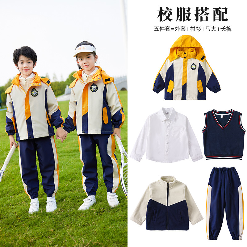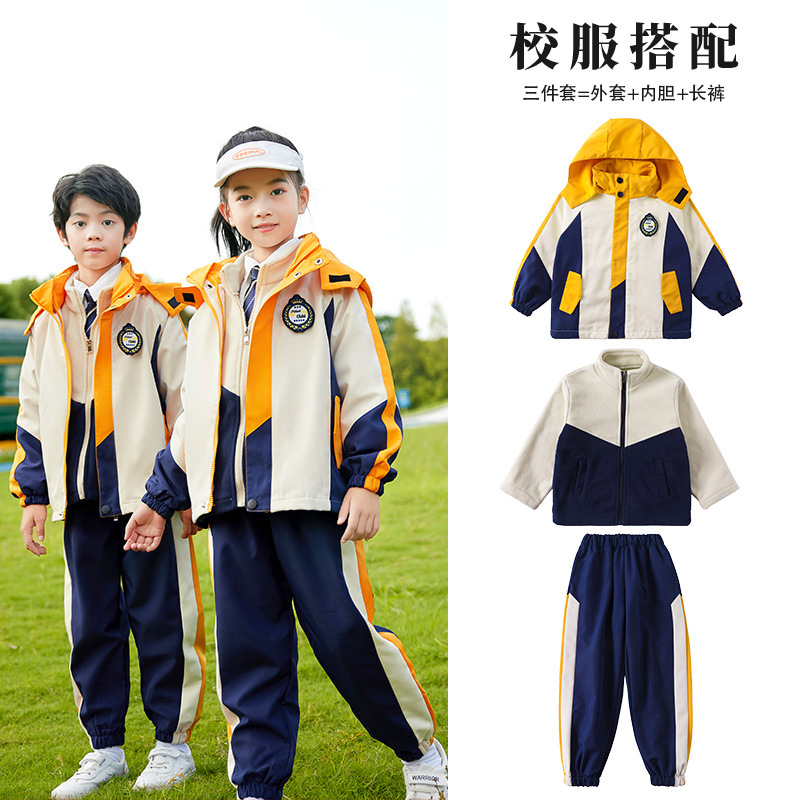 초등학생을위한 교복 가을과 겨울 세 조각 분리 가능한 재킷 어린이 교복 유치원 정원 유니폼 봄과 가을 세트