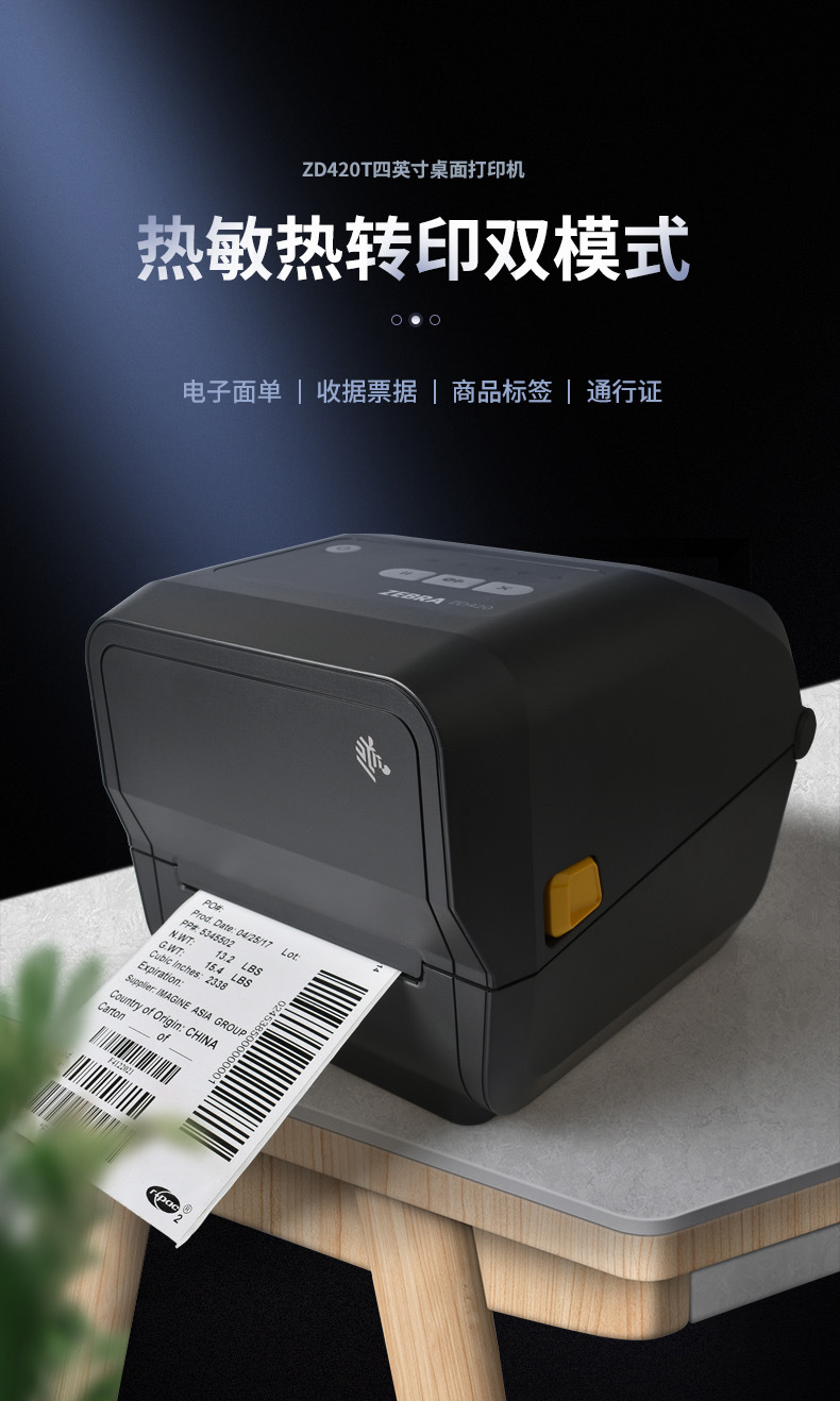 ZEBRA ZD420/421T 바코드 프린터 QR 코드 자체 접착 라벨 기계 익스프레스 전자 주문