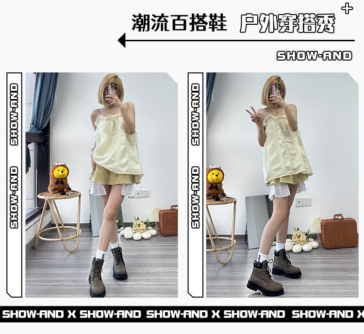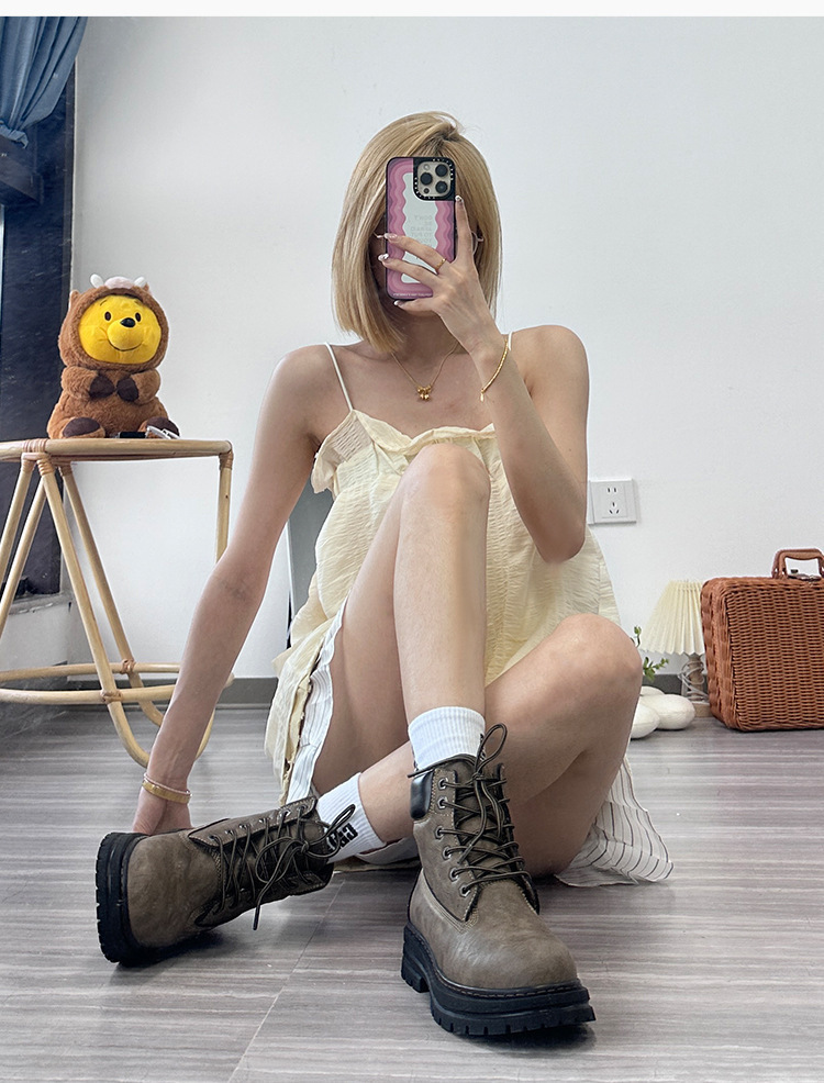 폭발성 아메리칸 스타일 마틴 부츠 남성 2023 년 새로운 가을 빈티지 영국 스타일 슈퍼 파이어 클라이밍 툴링 부츠 여성을위한 두꺼운 바닥스토어 가기