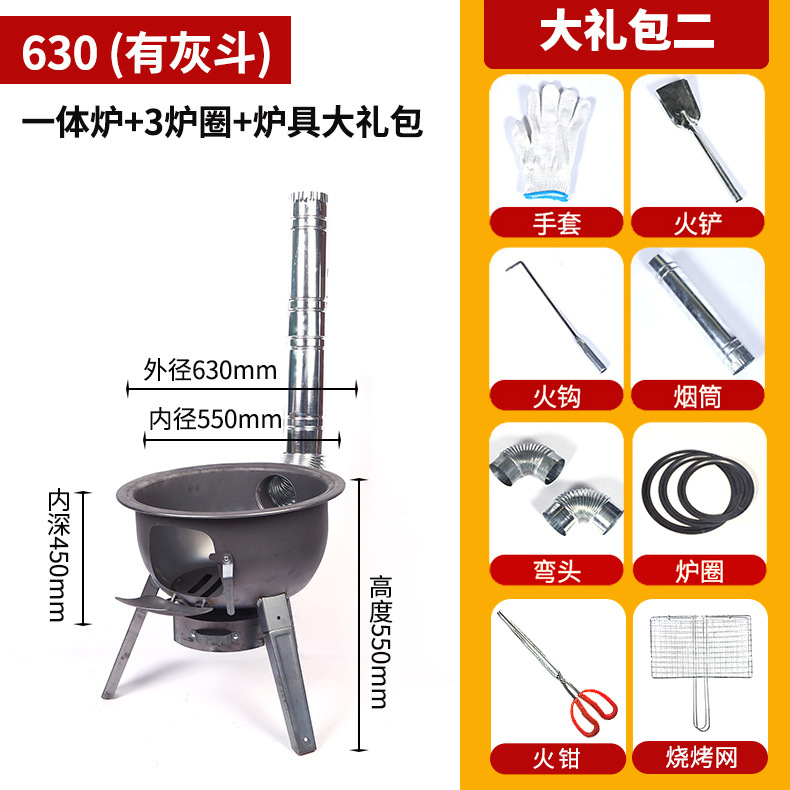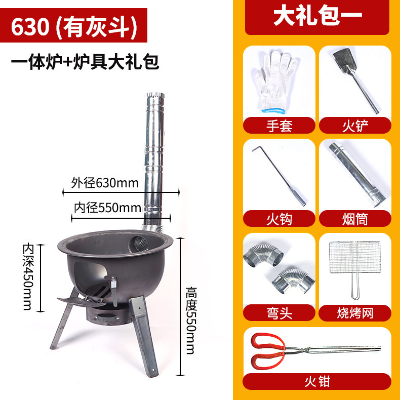 • 630 일체형 스토브 + 스토브 링 + 화재 집게 선물 팩