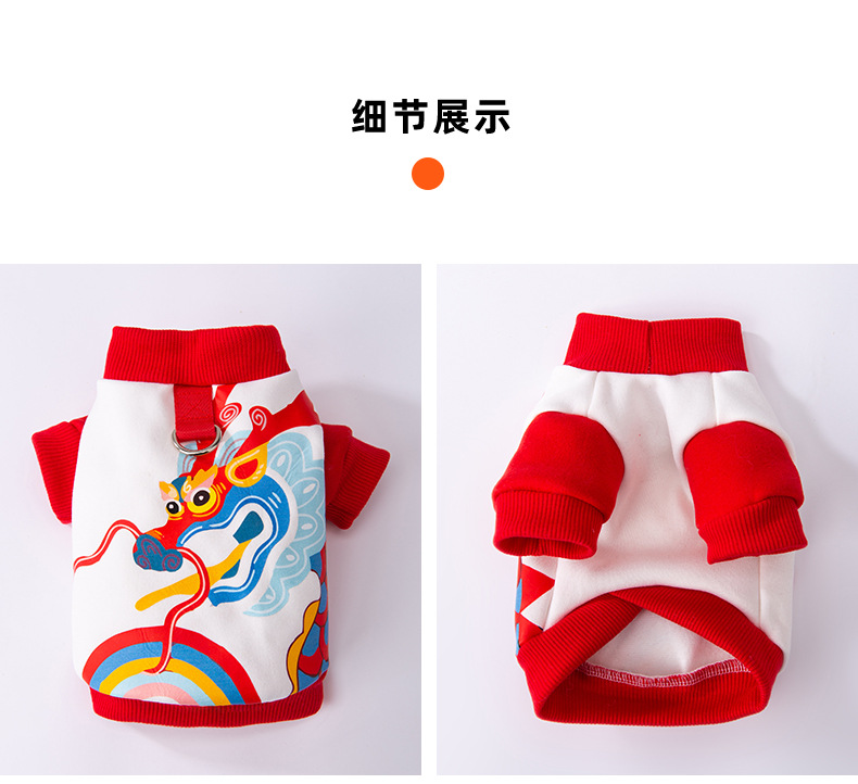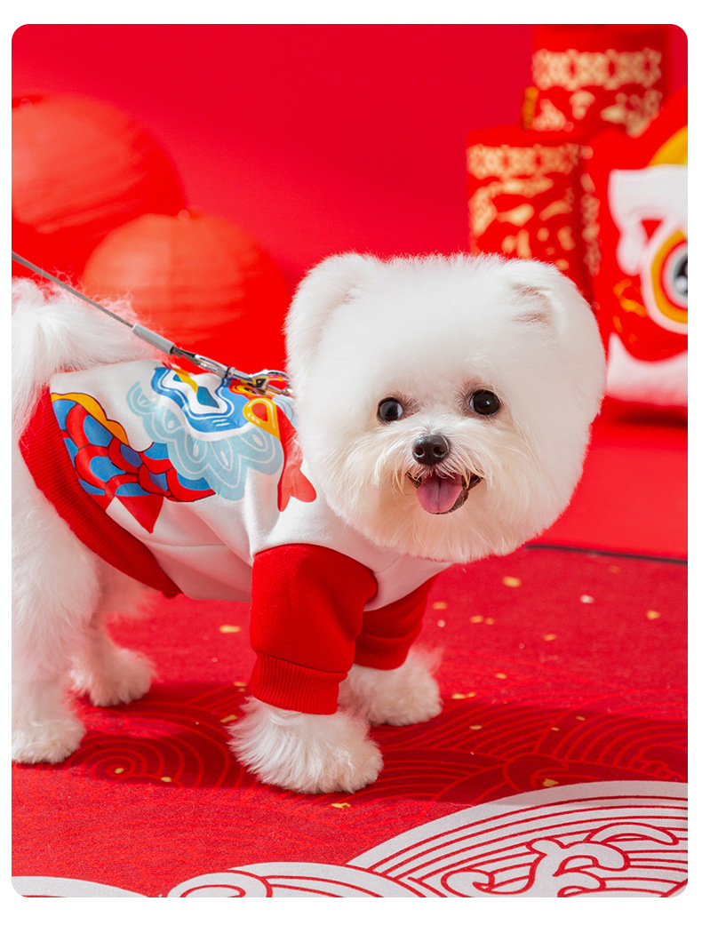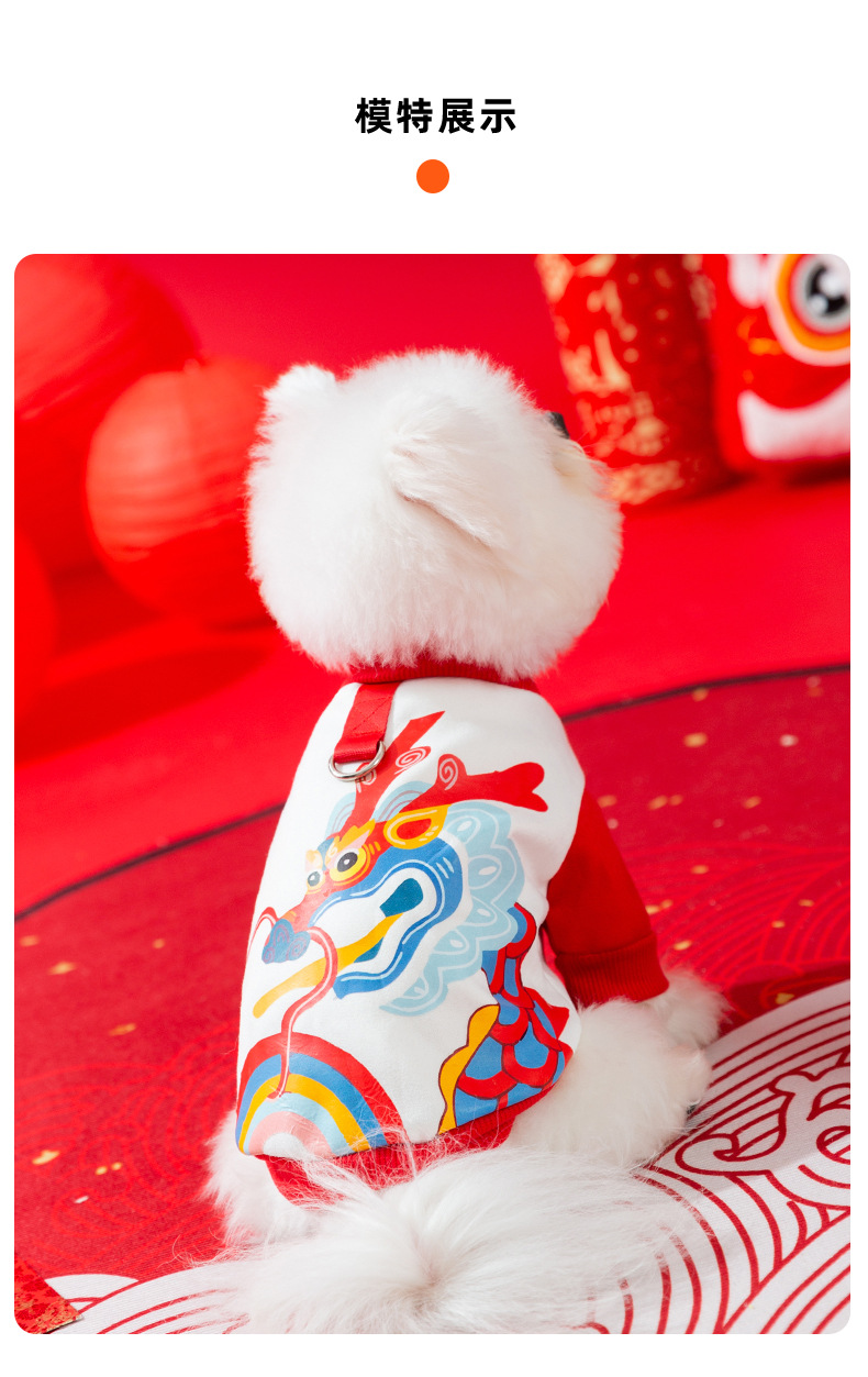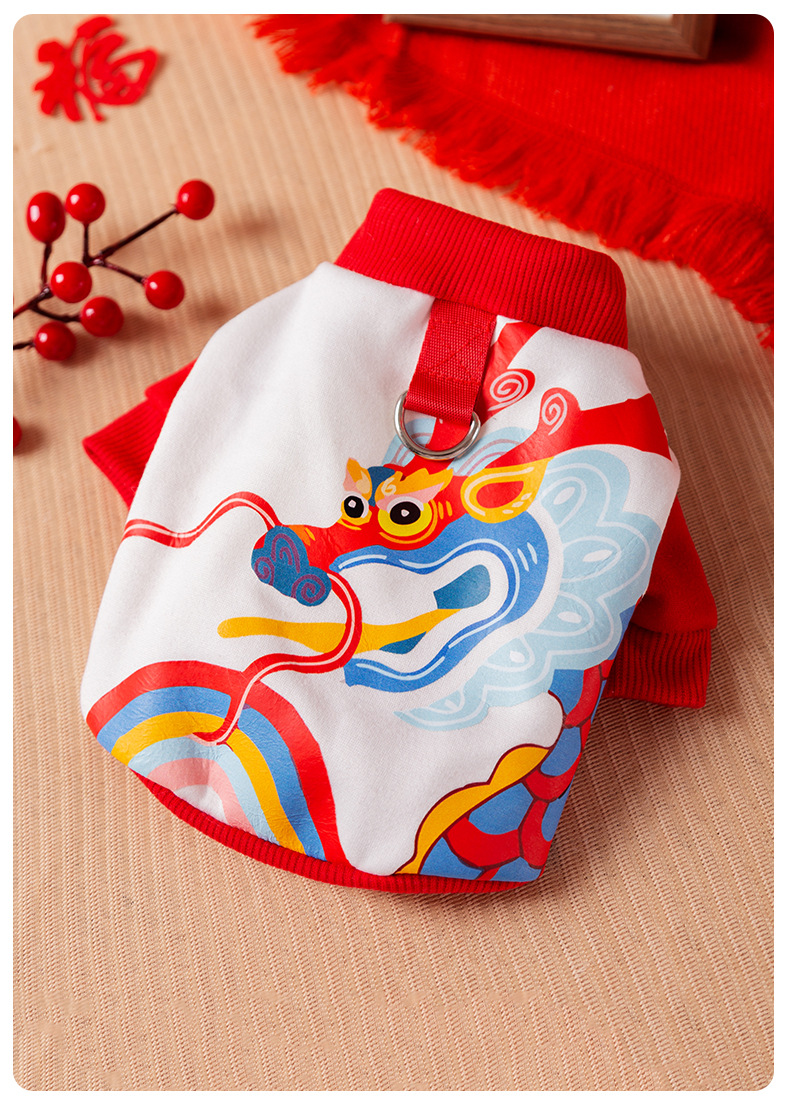 새해 Tuteng 드래곤 인쇄 견인 스웨터 작은 개 밖으로 패션 중국 스타일 봄과 가을 애완 동물 강아지 옷