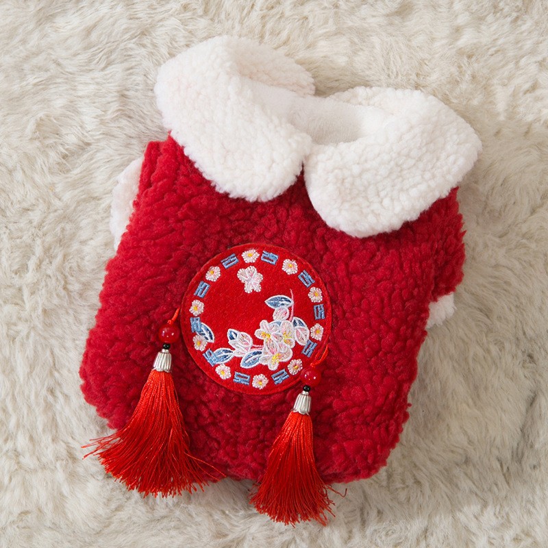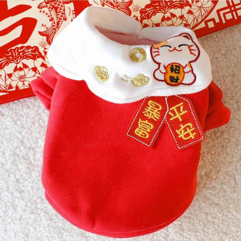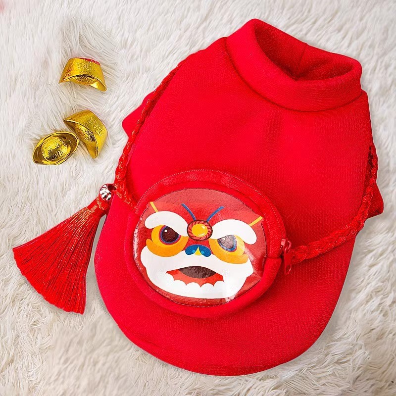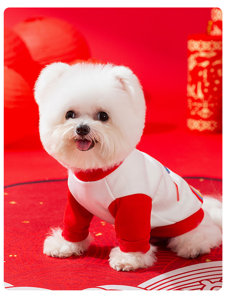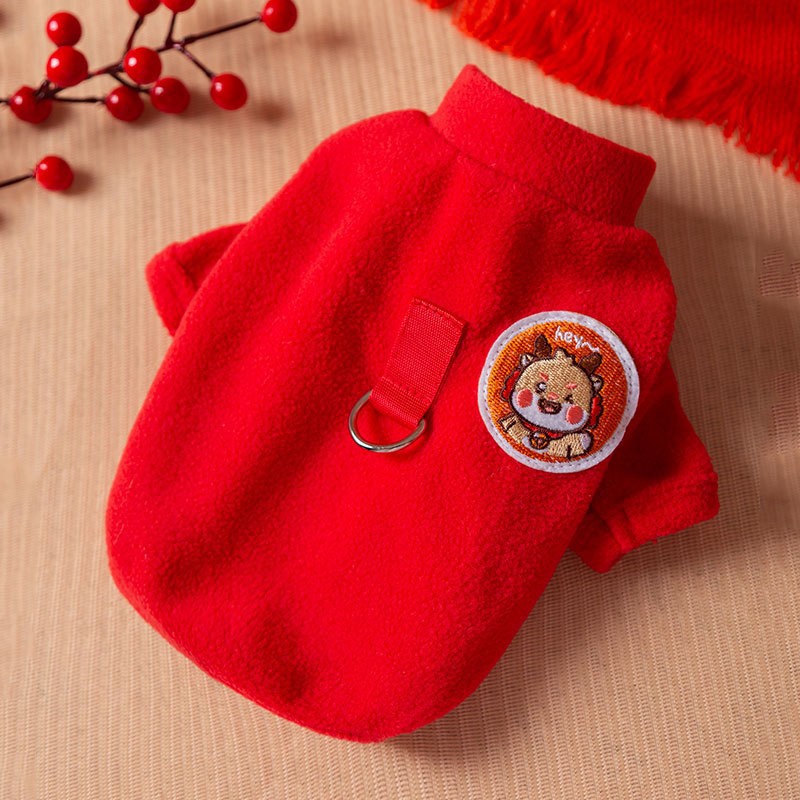 새해 Tuteng 드래곤 인쇄 견인 스웨터 작은 개 밖으로 패션 중국 스타일 봄과 가을 애완 동물 강아지 옷
