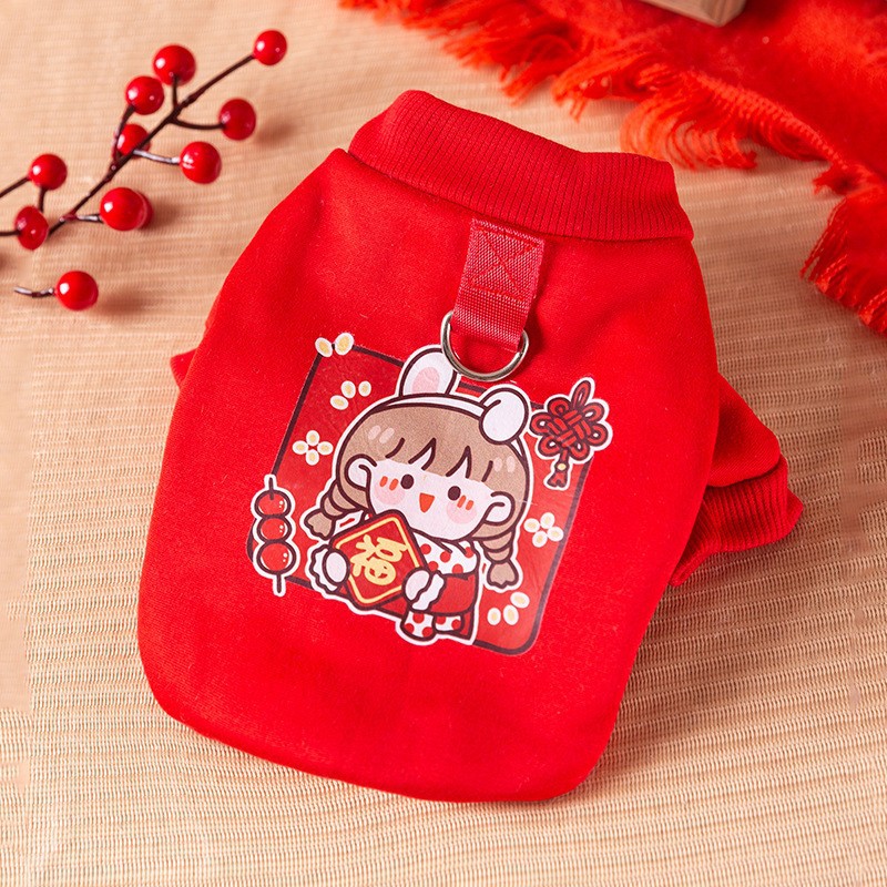 새해 Tuteng 드래곤 인쇄 견인 스웨터 작은 개 밖으로 패션 중국 스타일 봄과 가을 애완 동물 강아지 옷스토어 가기