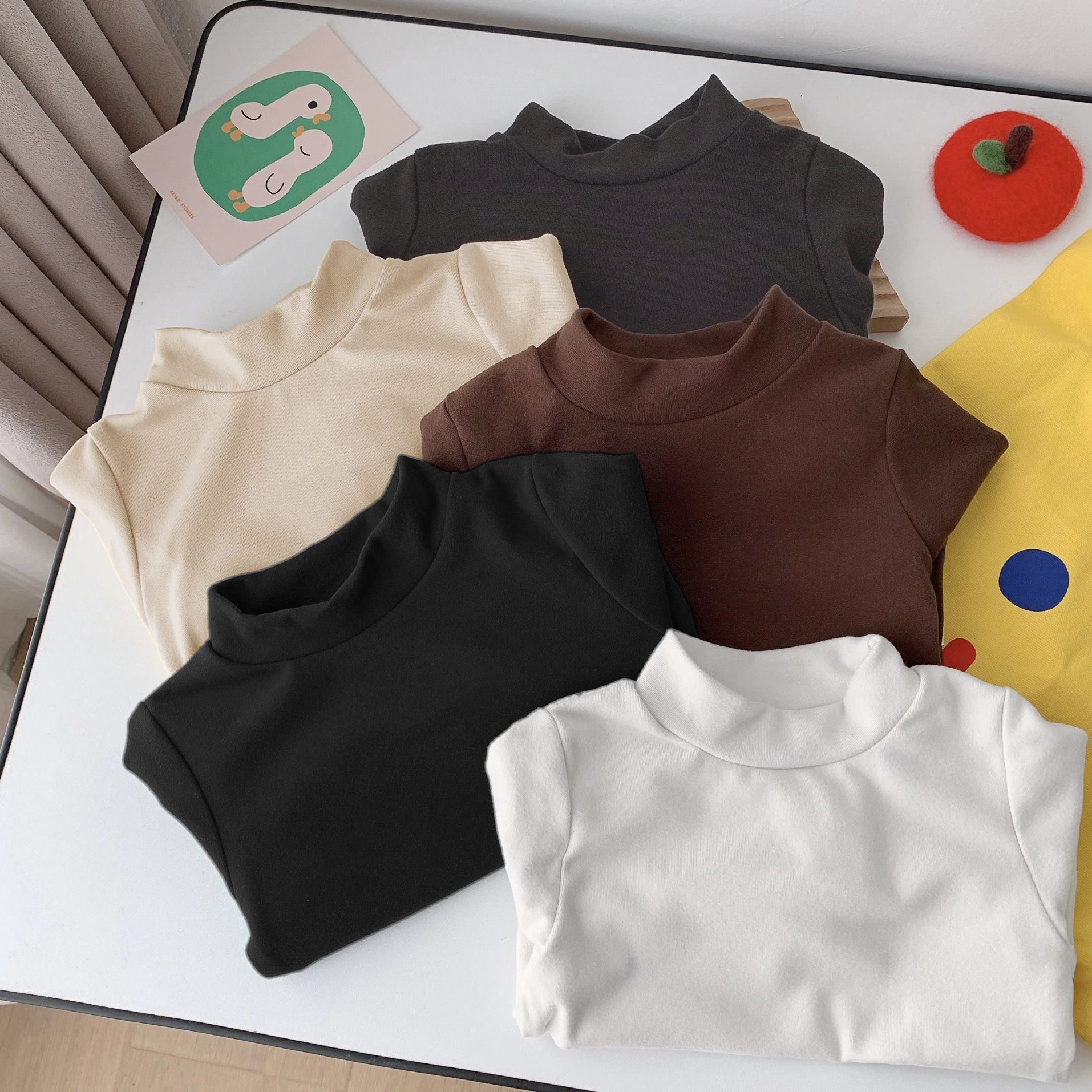 드 벨벳 어린이 바닥 셔츠 가을과 겨울 2024 재미 귀여운 따뜻한 스트레칭 긴팔 티셔츠 어린이 바닥 셔츠 탑스토어 가기