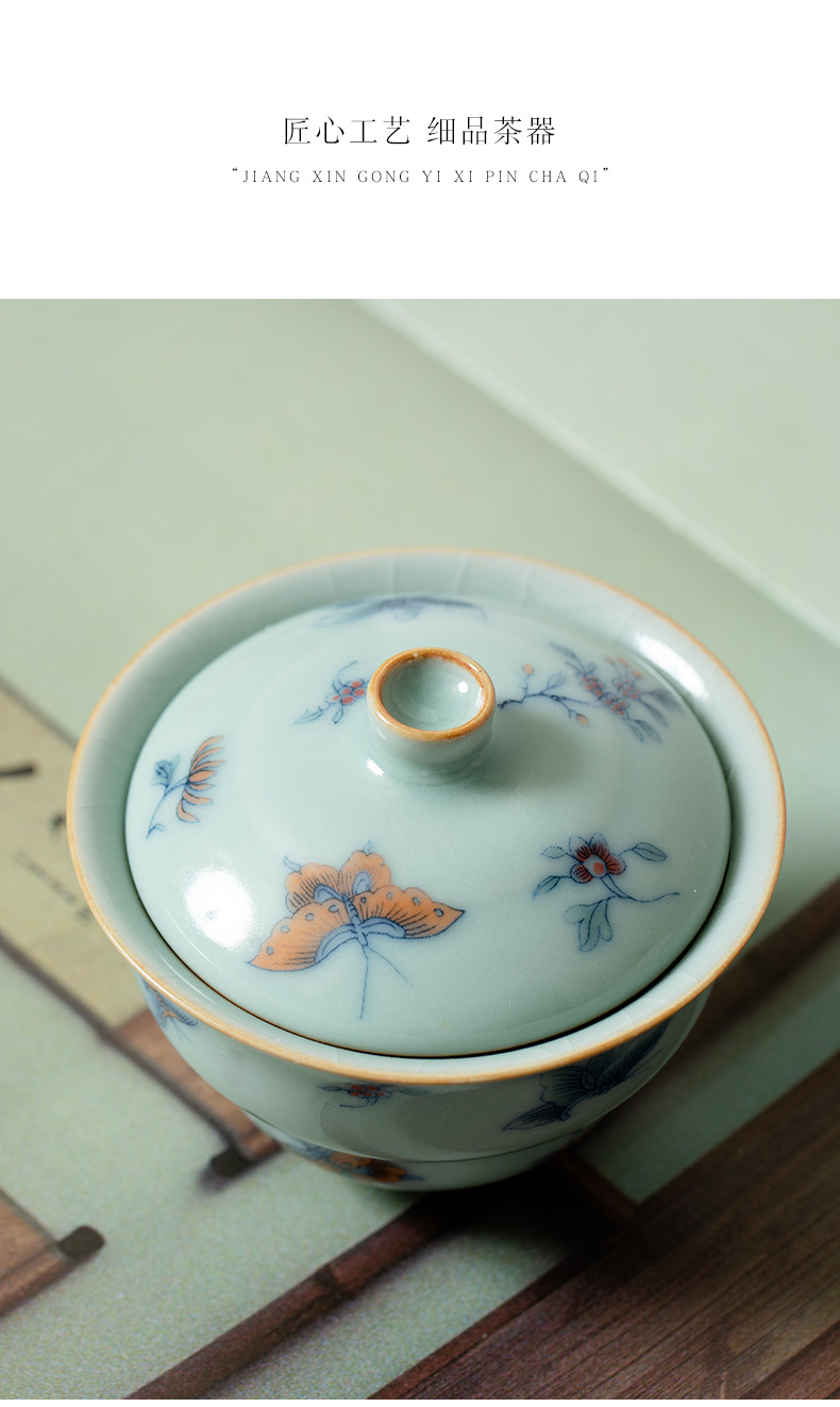 Tianqing Ru 가마 조롱박 커버 그릇 오픈 피스는 여성을 키울 수 있습니다 나비 사랑 꽃 단일 가정용 세라믹 쿵푸 차 세트 Ru 도자기스토어 가기