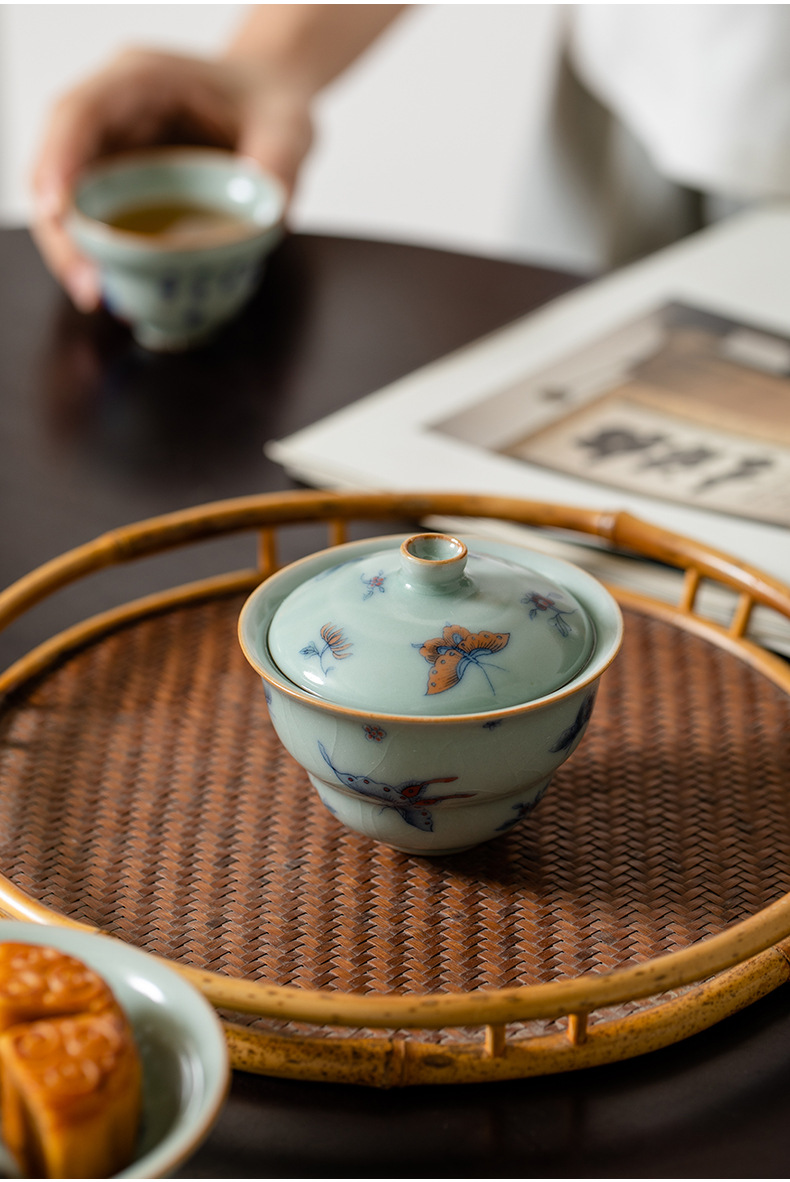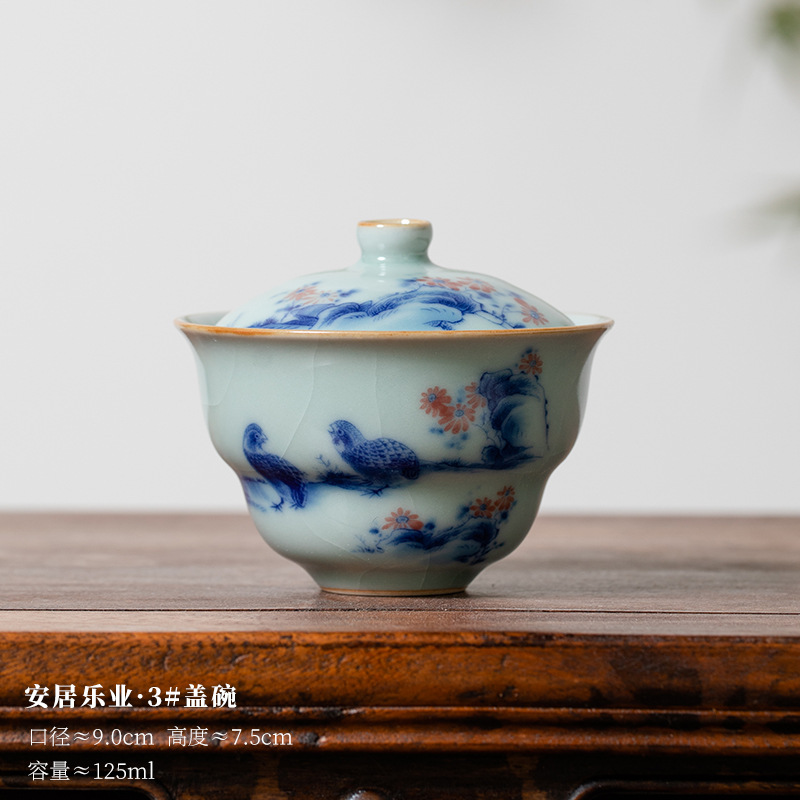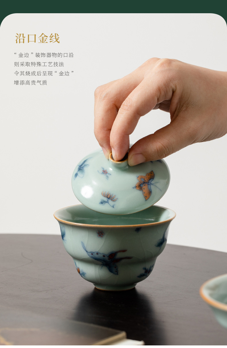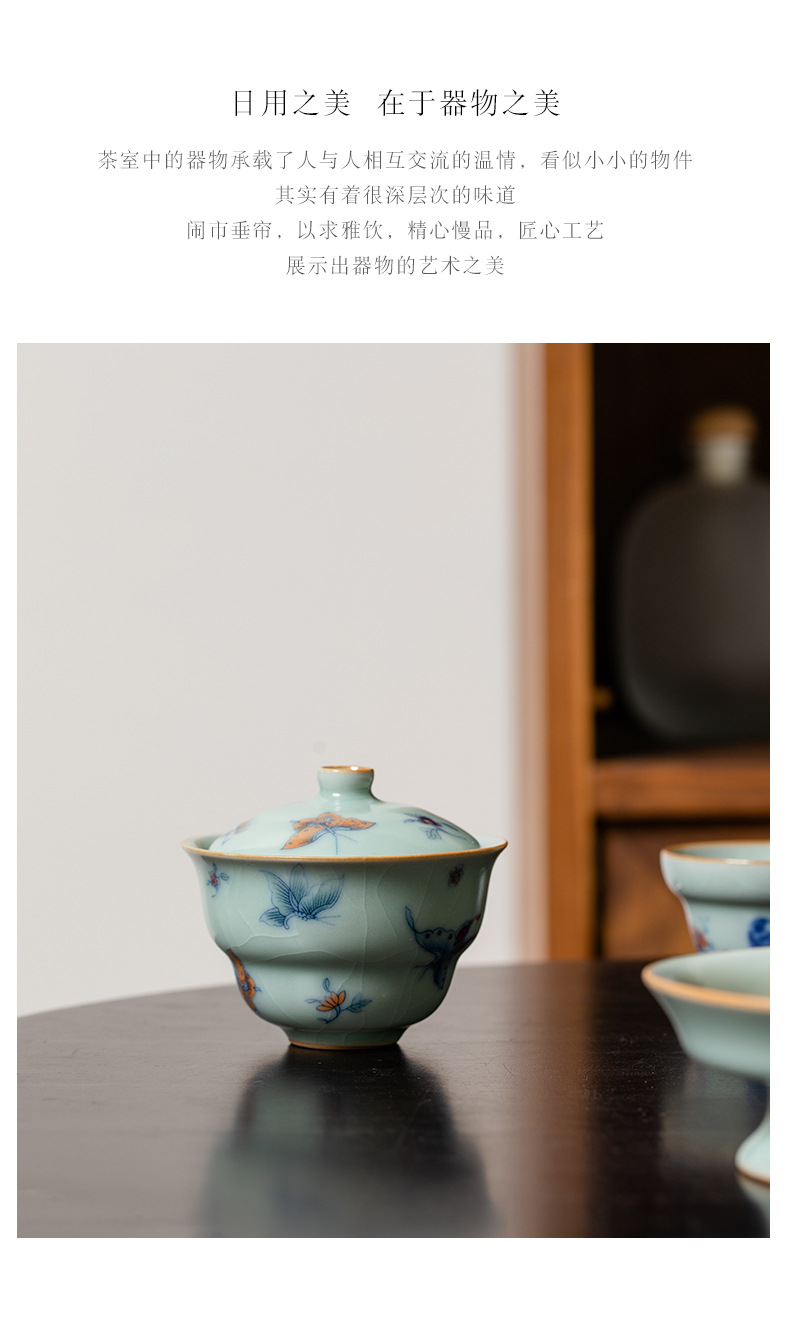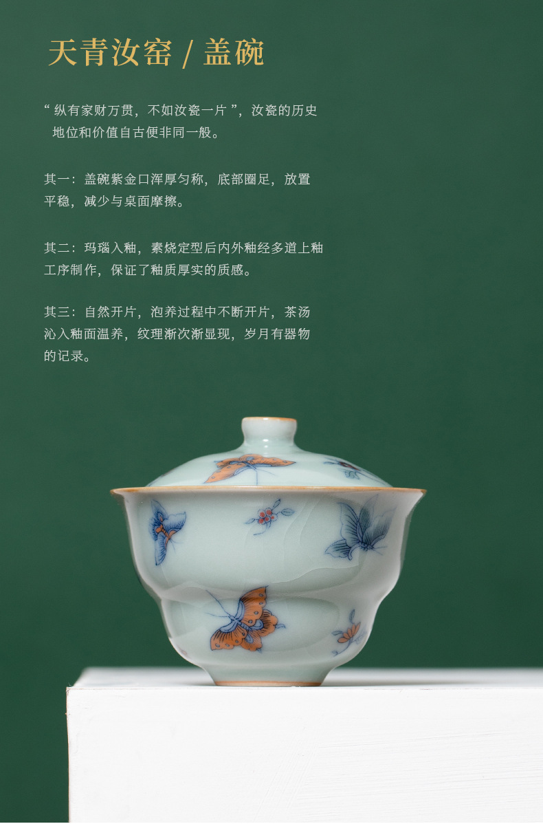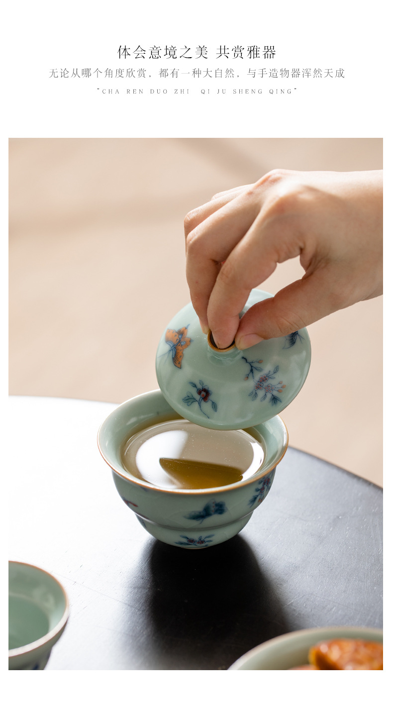 Tianqing Ru 가마 조롱박 커버 그릇 오픈 피스는 여성을 키울 수 있습니다 나비 사랑 꽃 단일 가정용 세라믹 쿵푸 차 세트 Ru 도자기