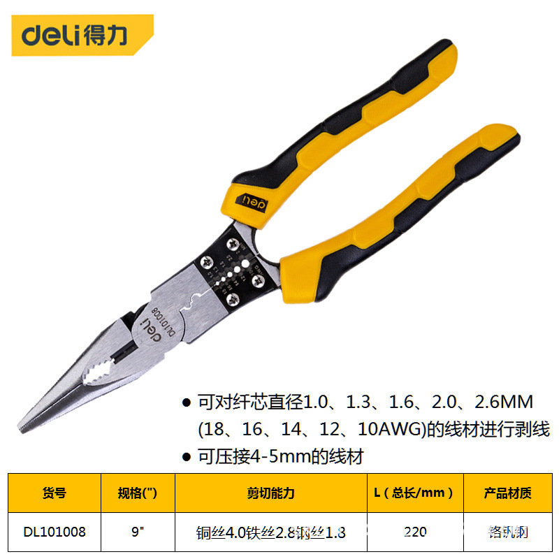 • 뾰족한 펜치 9 인치 (다기능) DL101008