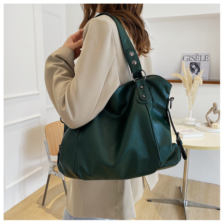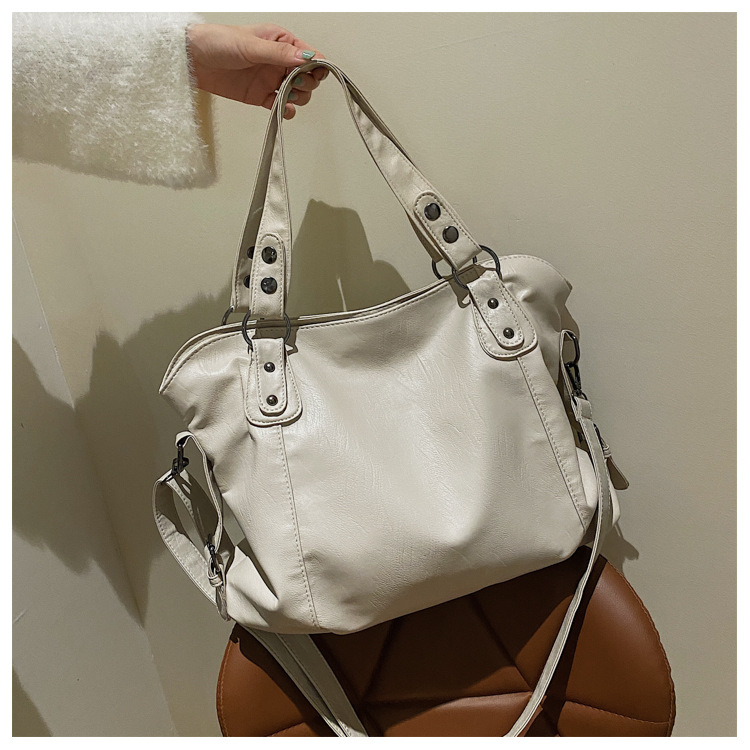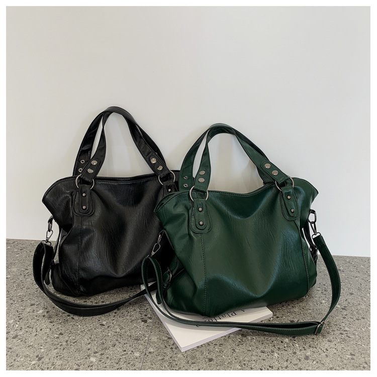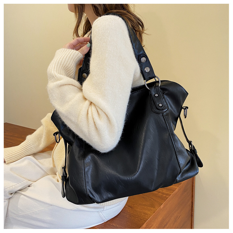 토트 백 국경 간 소프트 PU 캐주얼 올 매치 핸드백 대용량 유럽 및 미국 레트로 분위기 통근 어깨 가방