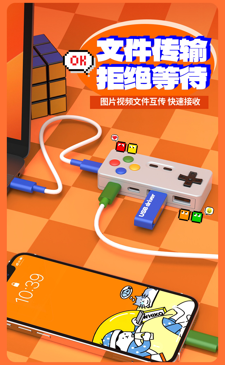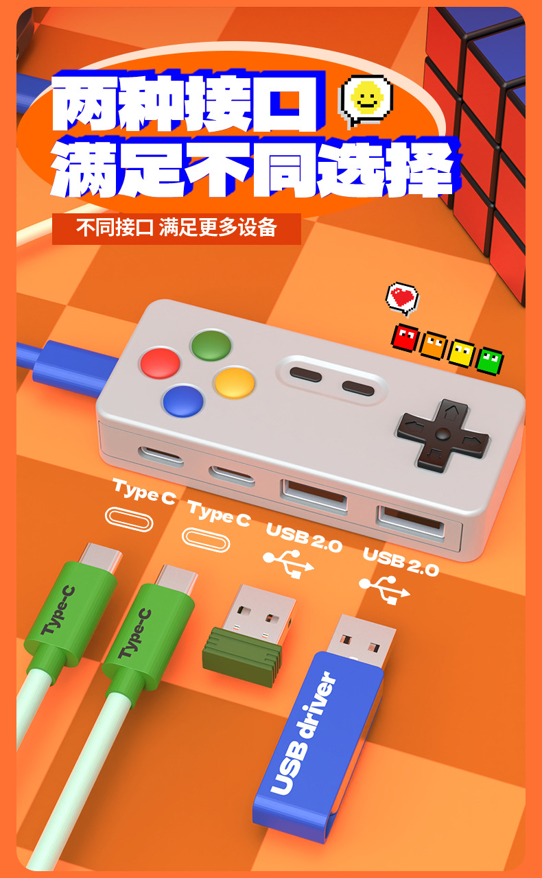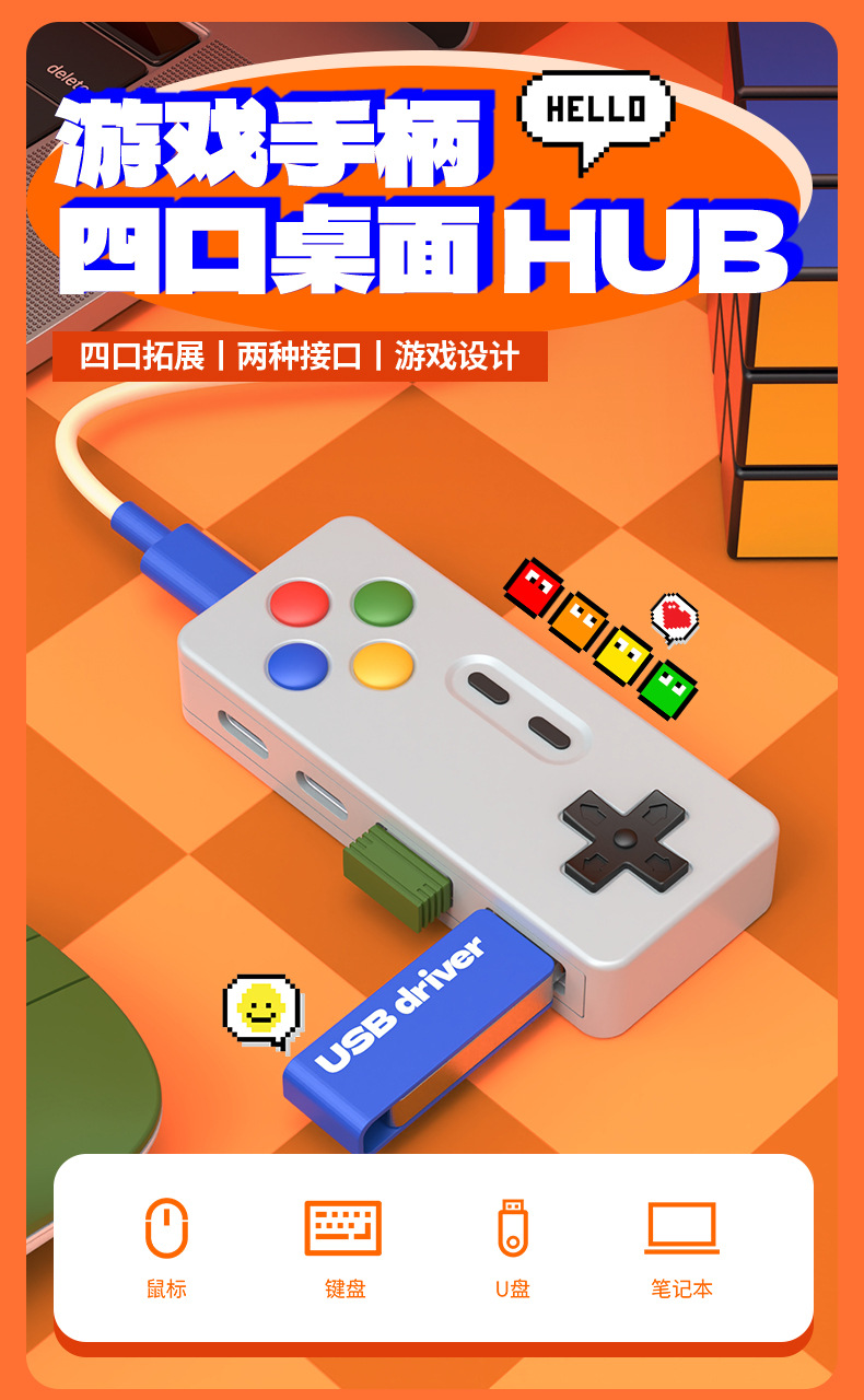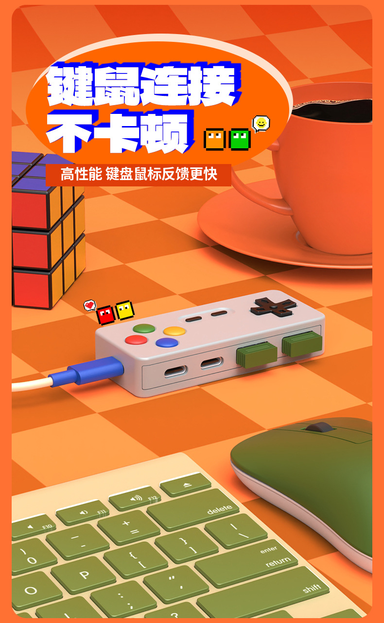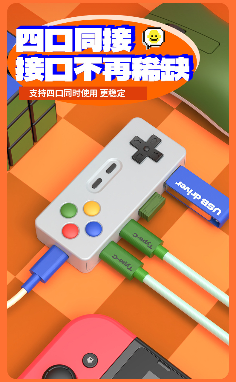 창조적 인 성격 만화 게임 모델 허브 4 대 1 멀티 포트 확장 마우스 키보드 U 디스크 컨버터 커넥터스토어 가기
