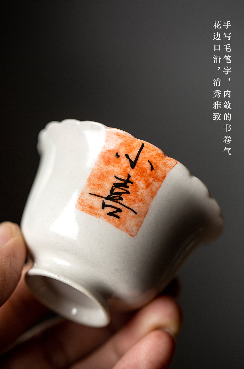잔디와 나무 회색 언더 유약 손으로 그린 꽃 입 작은 Xi 컵 중국 토스트 티 컵 레트로 마스터 컵 싱글 티 컵 세라믹
