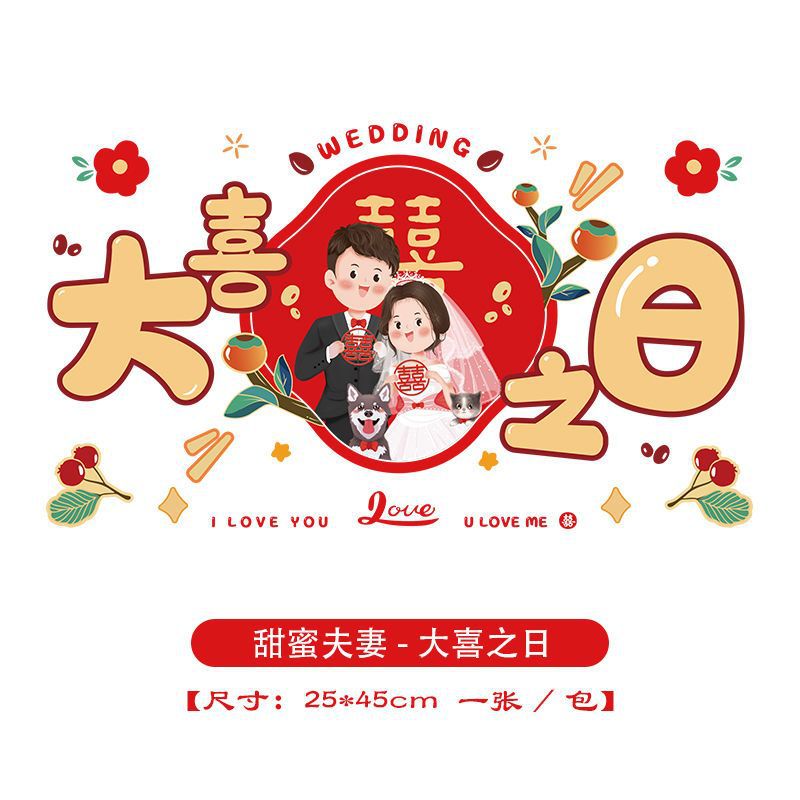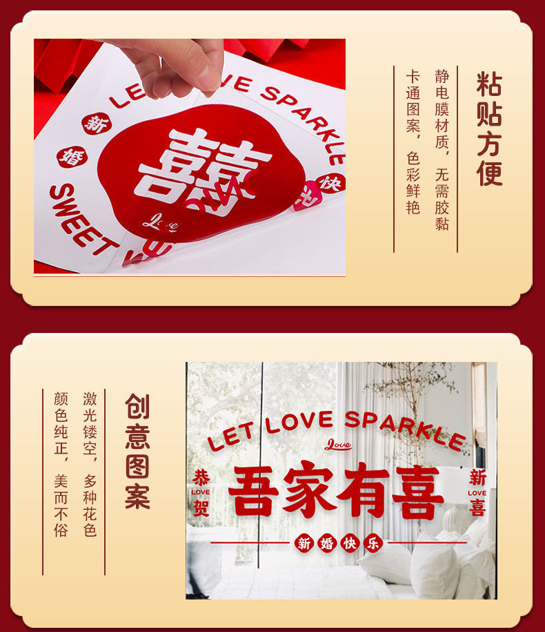웨딩 장식 Xi 캐릭터 스티커 정적 스티커 창 Xi 캐릭터 레이아웃 웨딩 룸 웨딩 용품 특수 유리 창 스티커
