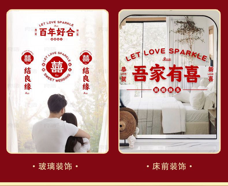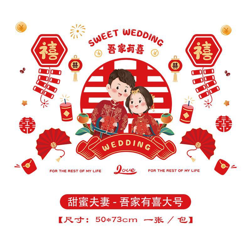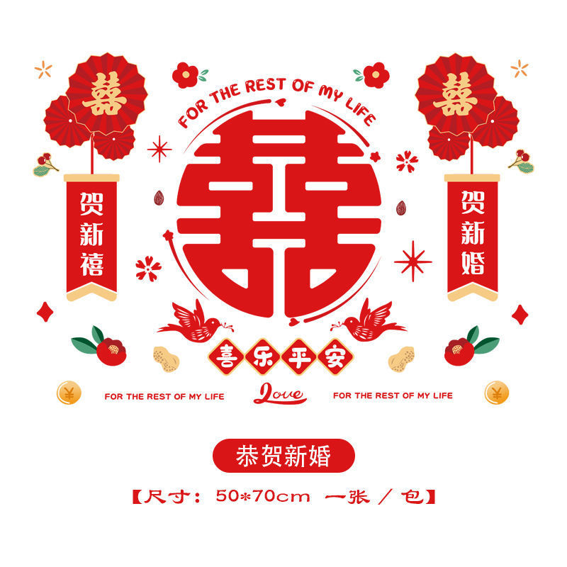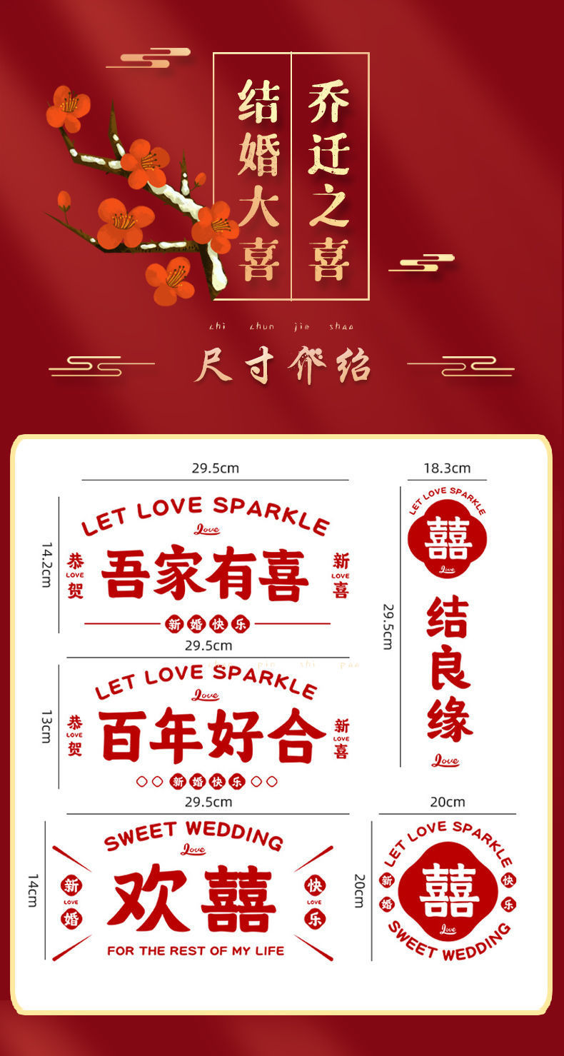 웨딩 장식 Xi 캐릭터 스티커 정적 스티커 창 Xi 캐릭터 레이아웃 웨딩 룸 웨딩 용품 특수 유리 창 스티커스토어 가기