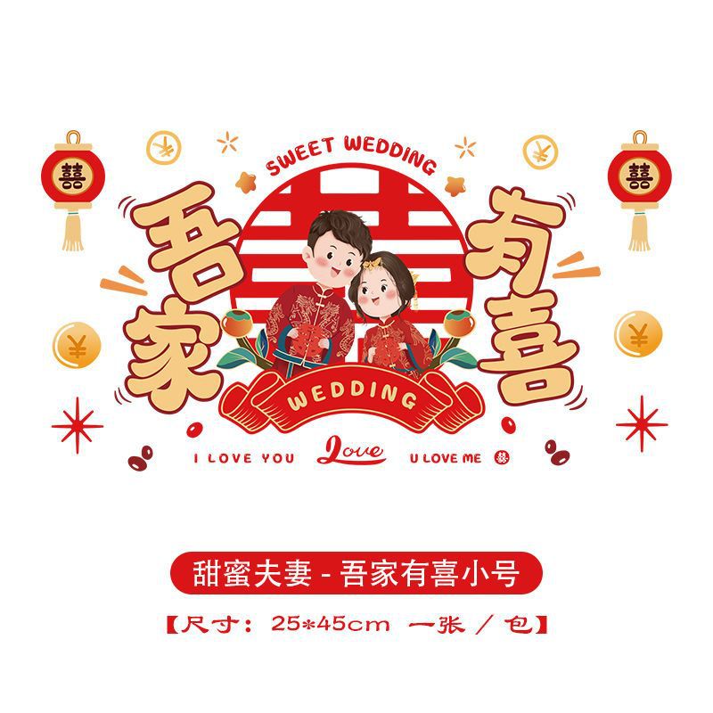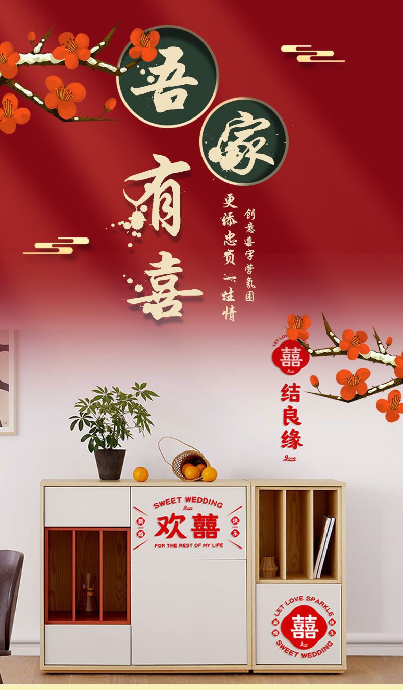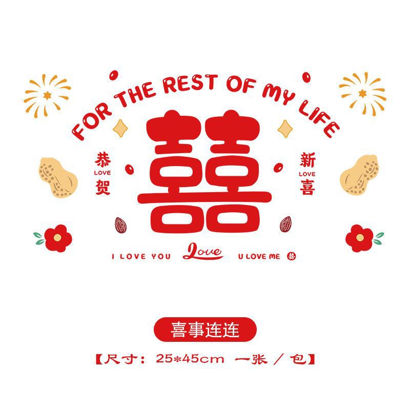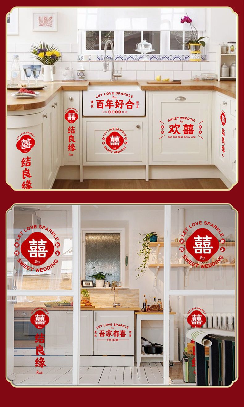 웨딩 장식 Xi 캐릭터 스티커 정적 스티커 창 Xi 캐릭터 레이아웃 웨딩 룸 웨딩 용품 특수 유리 창 스티커스토어 가기