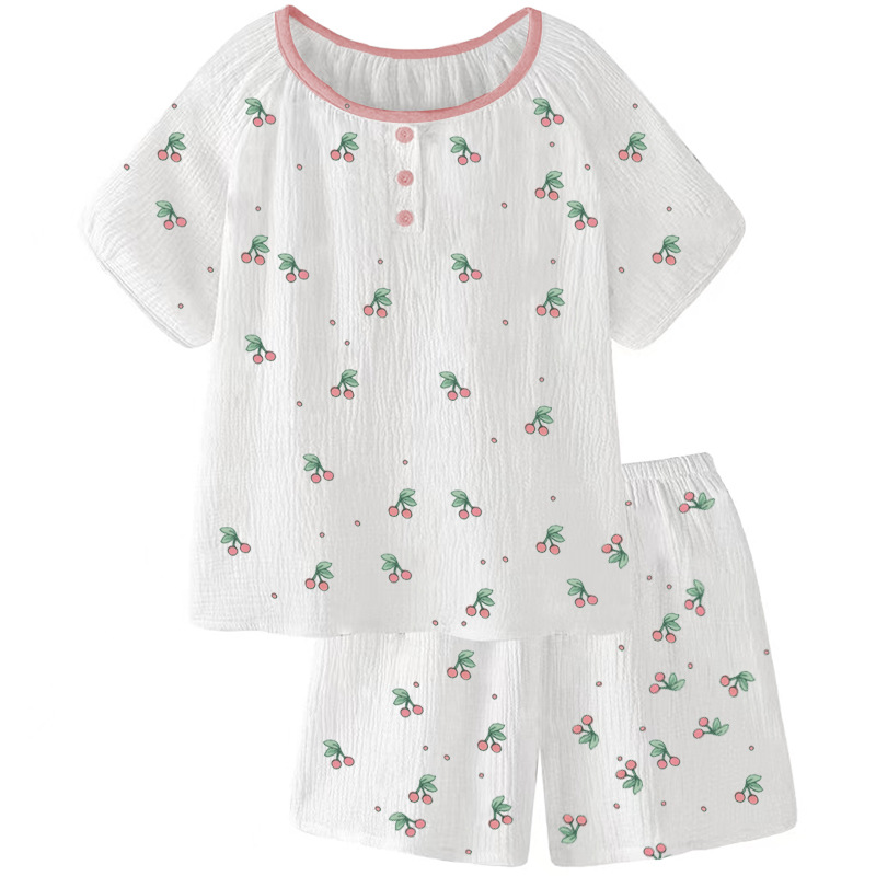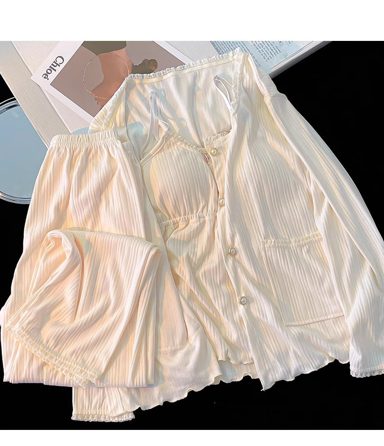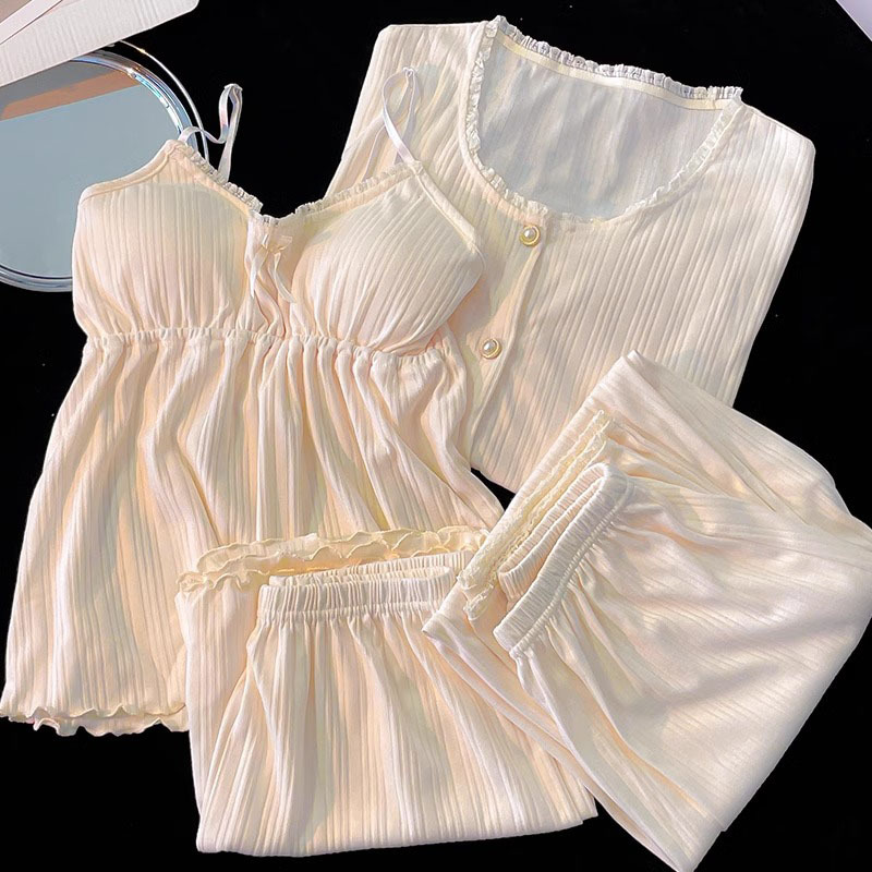 가벼운 살구색 스타일 달콤한 잠옷 여성의 봄과 가을 긴 소매 아웃웨어 캐주얼 4 피스 세트 가슴 패드 슬링스토어 가기