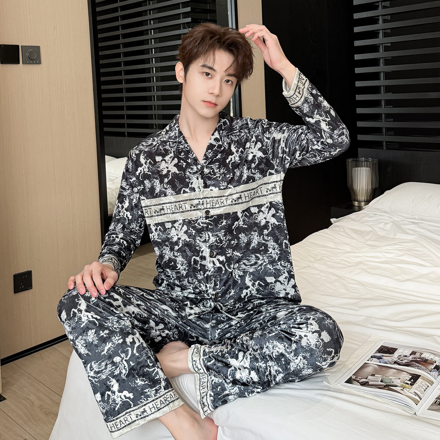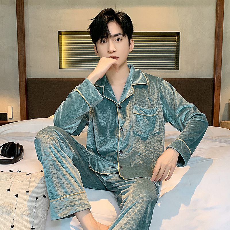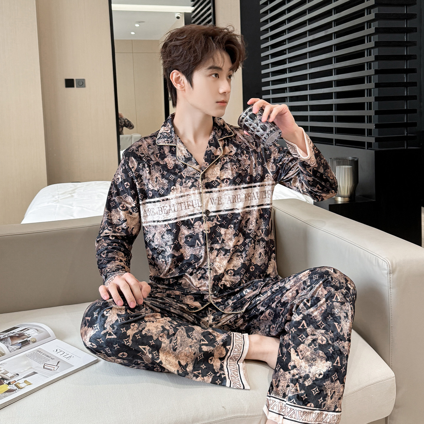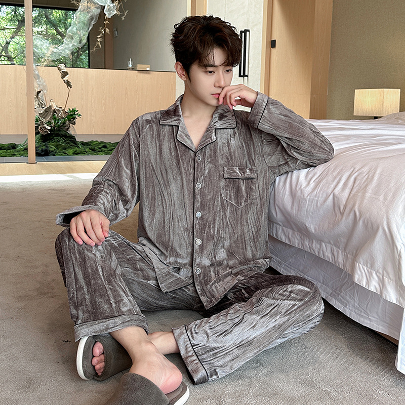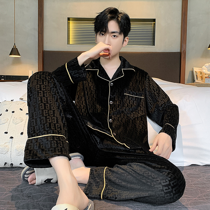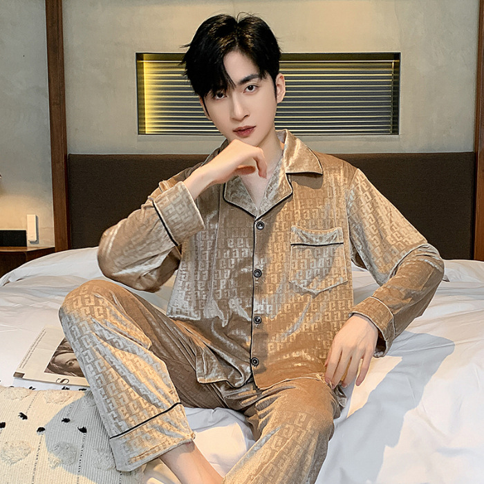 2025 겨울 남성용 골드 벨벳 잠옷, 고품질, 가벼운 럭셔리, 두꺼운 다이아몬드 벨벳, 골드 벨벳 홈웨어 세트 공장스토어 가기