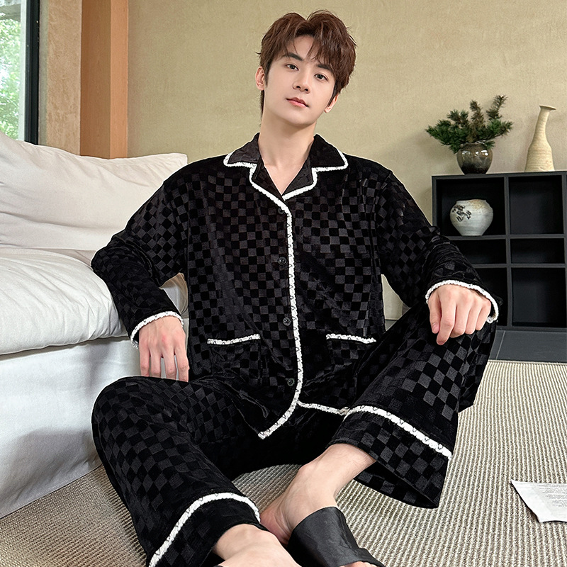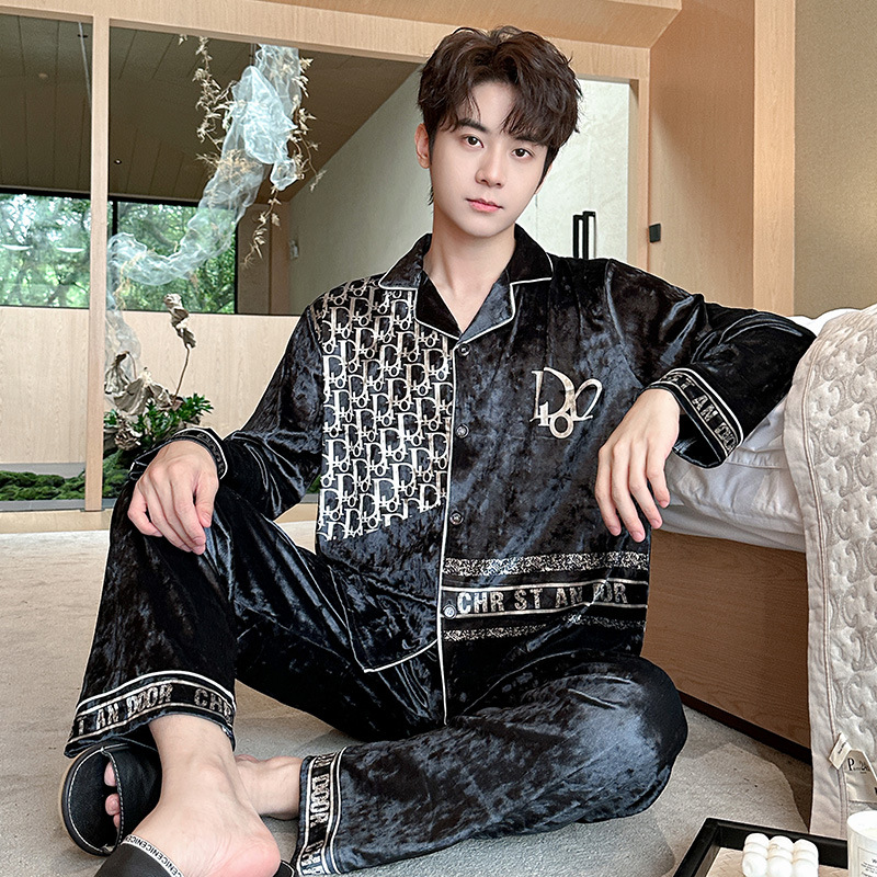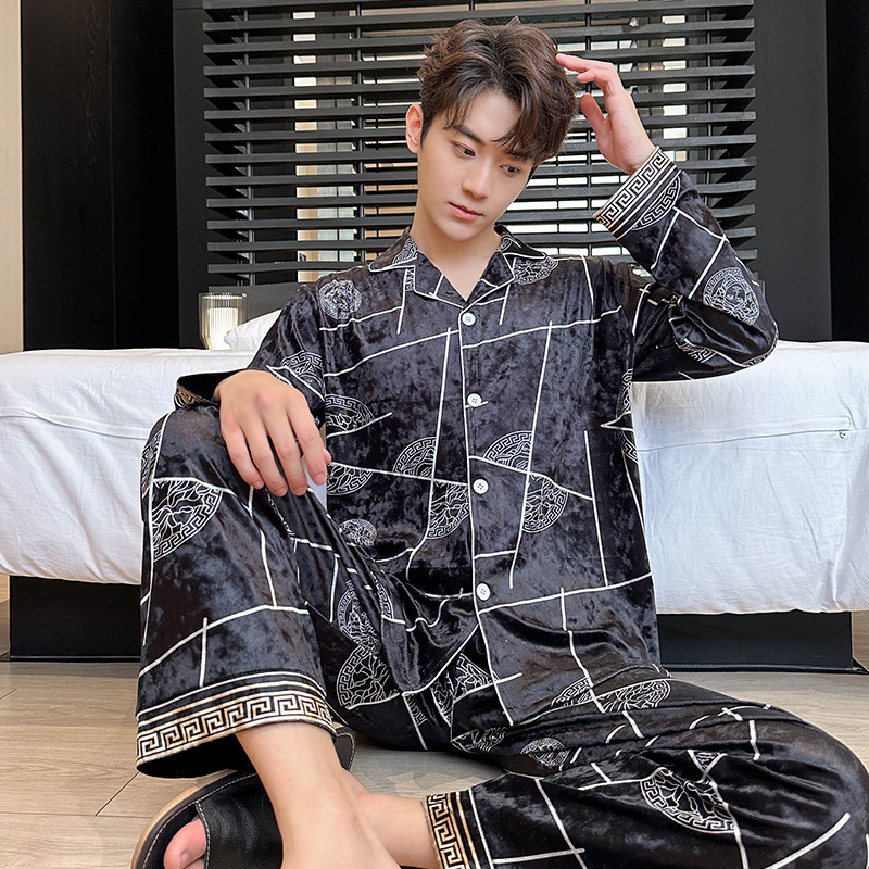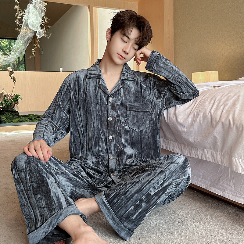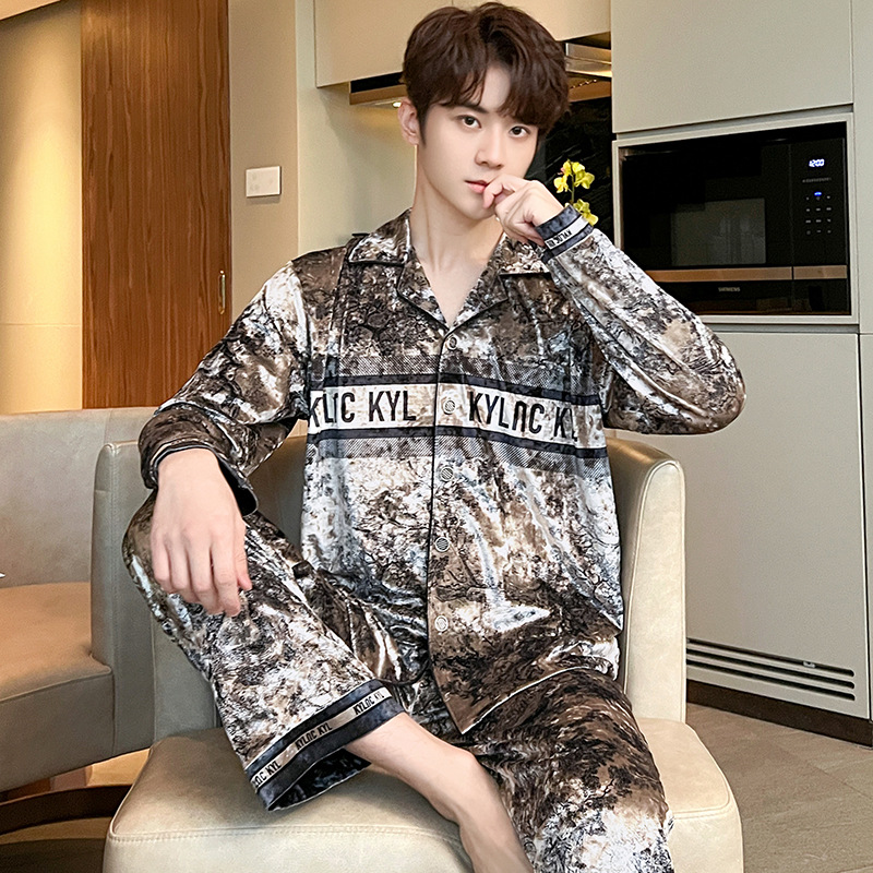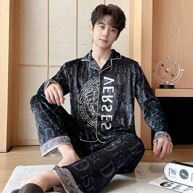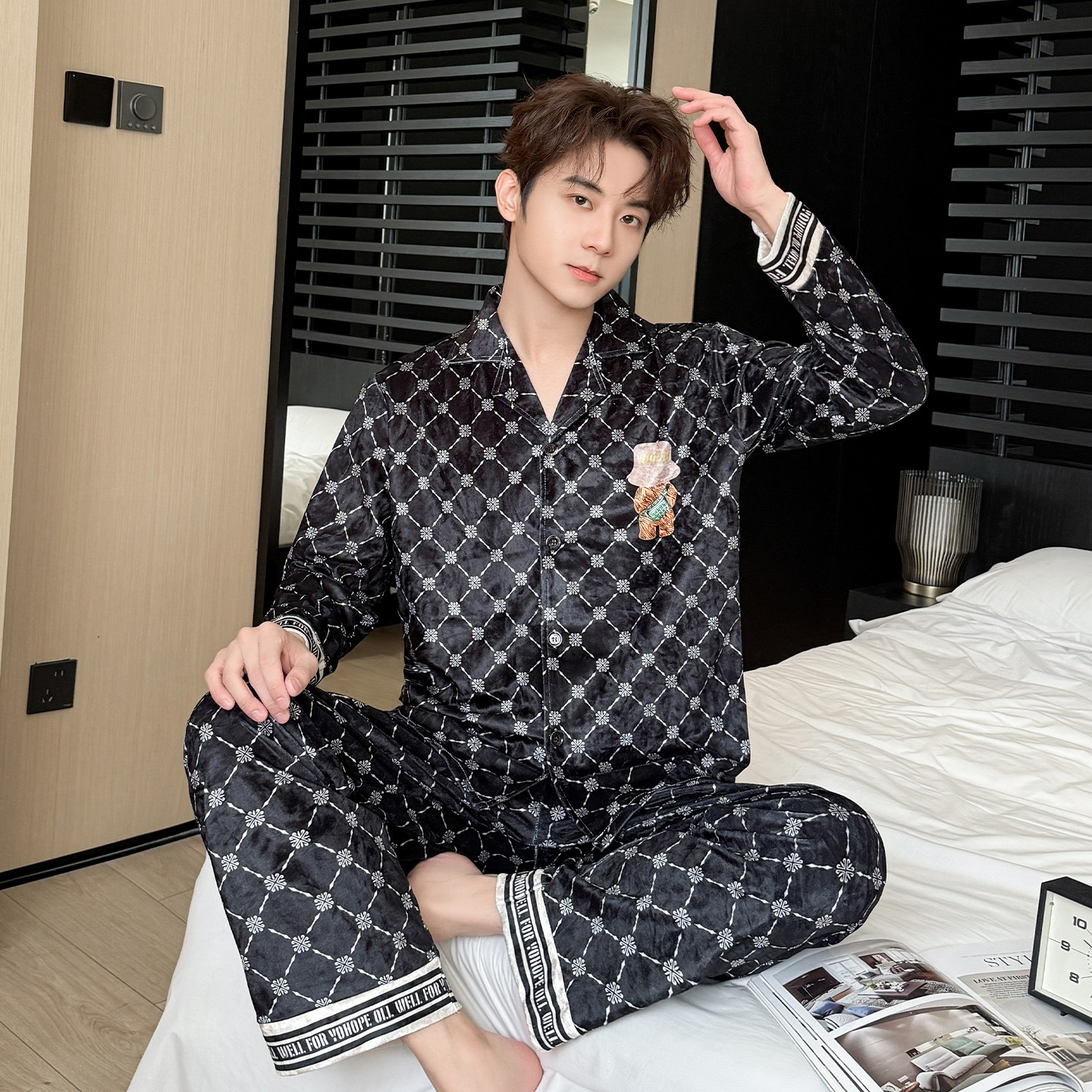 2025 겨울 남성용 골드 벨벳 잠옷, 고품질, 가벼운 럭셔리, 두꺼운 다이아몬드 벨벳, 골드 벨벳 홈웨어 세트 공장스토어 가기