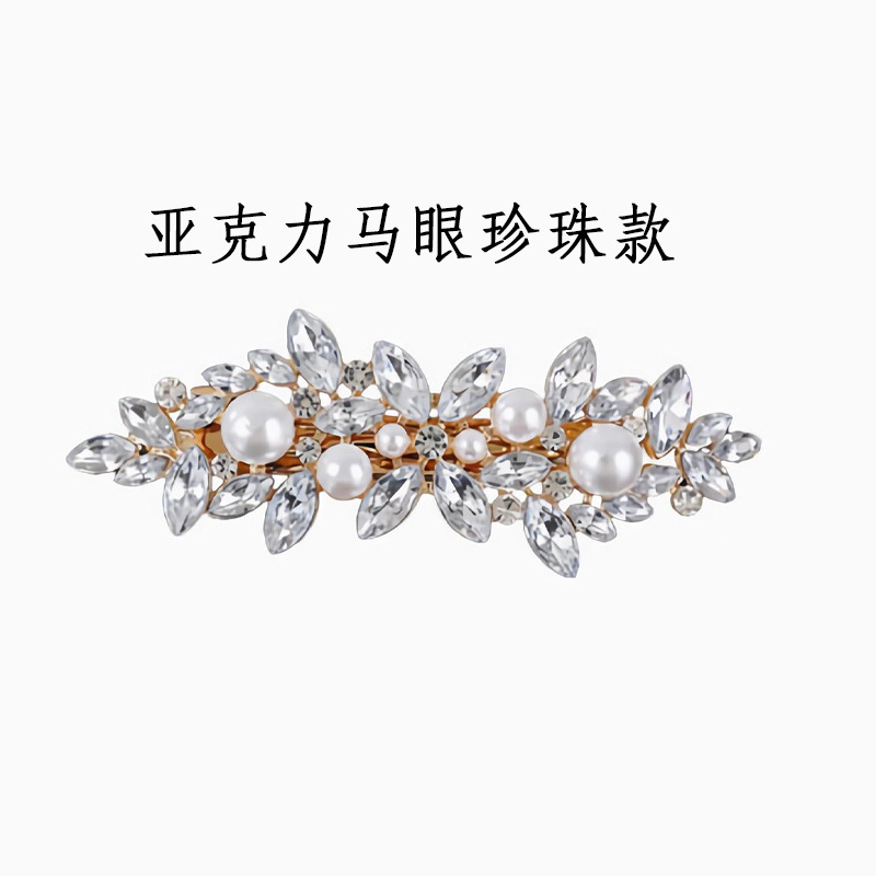 유럽 및 미국 해외 직구 마이크로 유리 크리스탈 스프링 클립 뒷머리 장식 헤어 액세서리 진주 헤어핀 도매스토어 가기