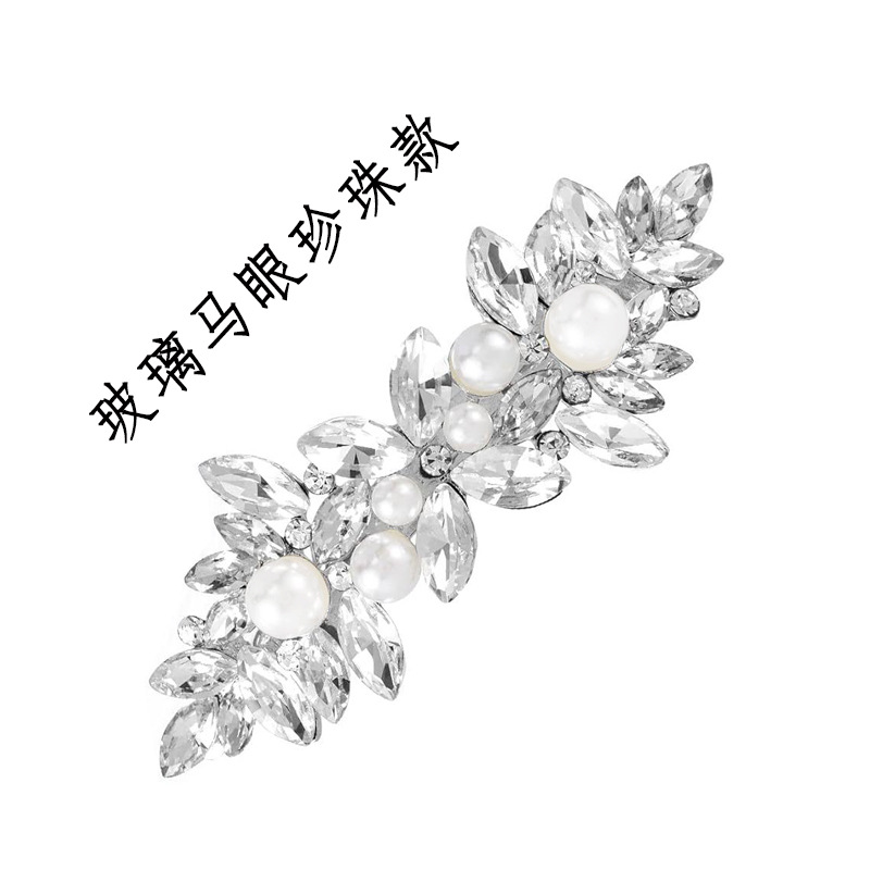 유럽 및 미국 해외 직구 마이크로 유리 크리스탈 스프링 클립 뒷머리 장식 헤어 액세서리 진주 헤어핀 도매