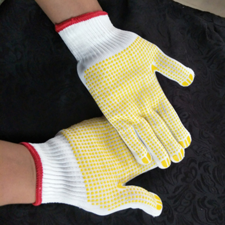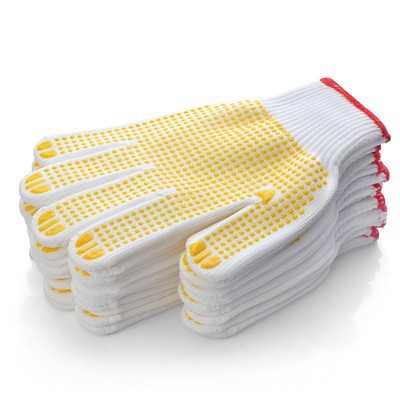 노동 보호 장갑 두꺼운 면 거즈 장갑 내마모성 보호 분배 장갑 미끄럼 방지 구슬 장갑을 들고 나일론 장갑