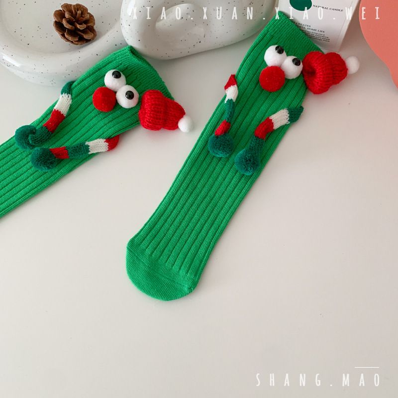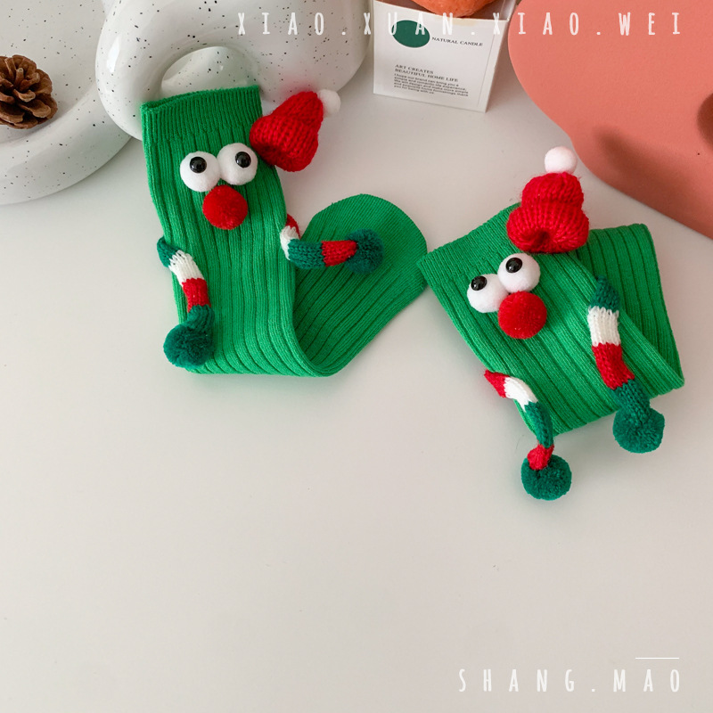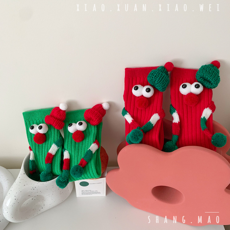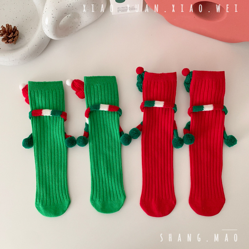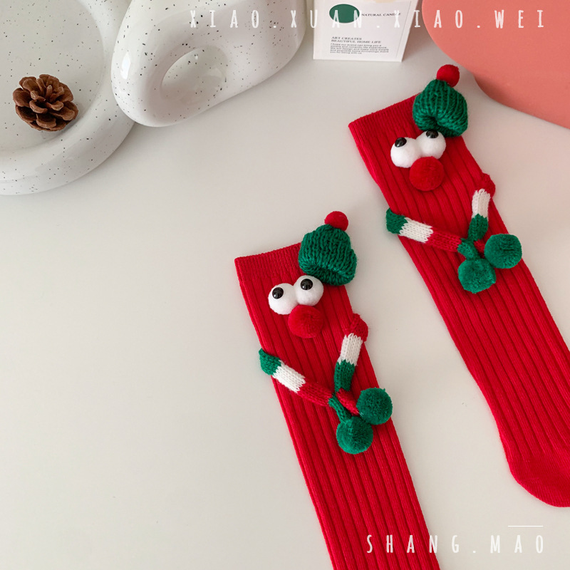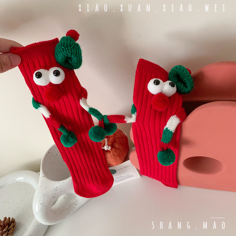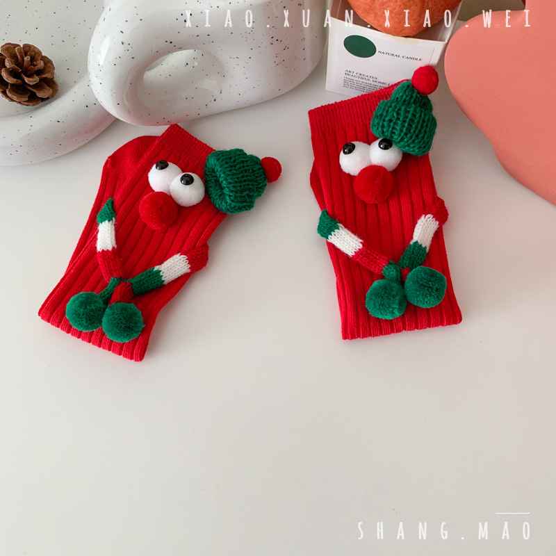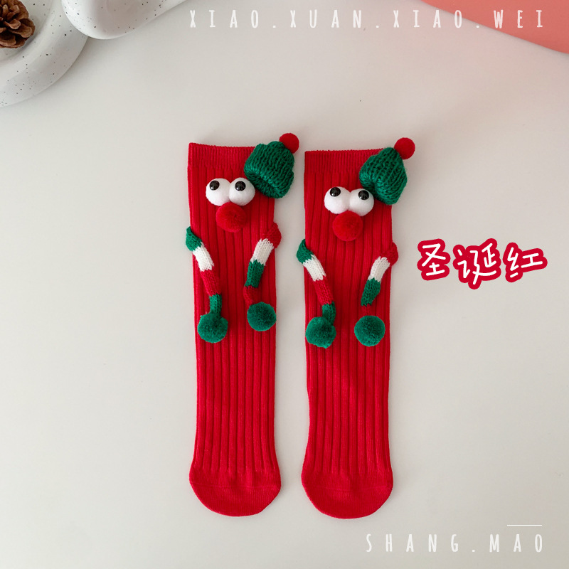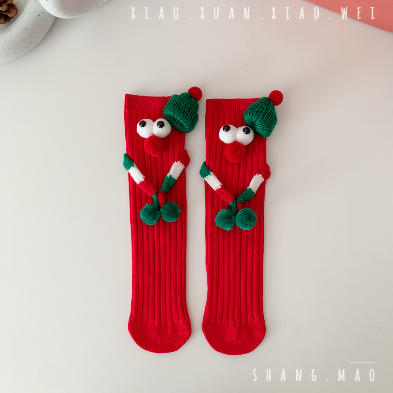 어린이 새해 빨간 양말 크리스마스 선물 재미있는 귀여운 자기 양말 손으로 소년 소녀 만화 아기 중간 종아리 양말스토어 가기