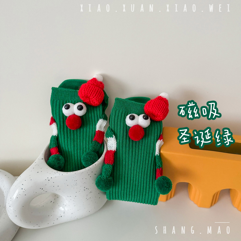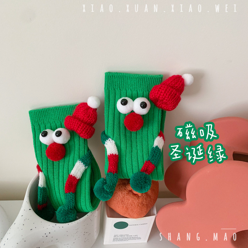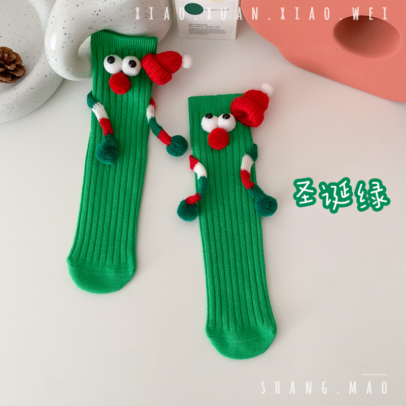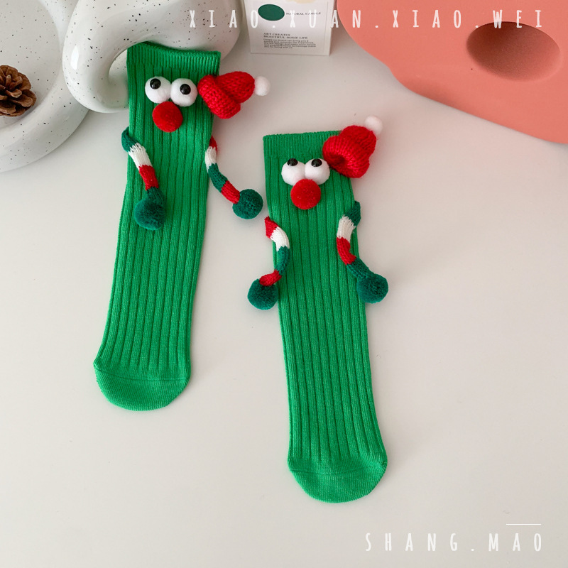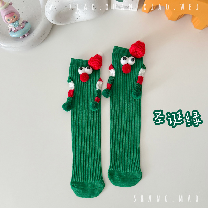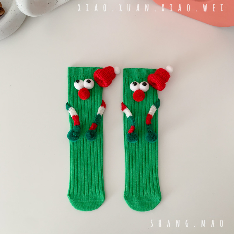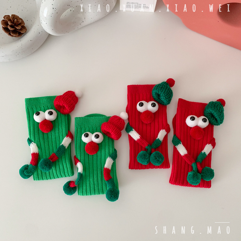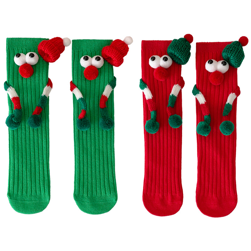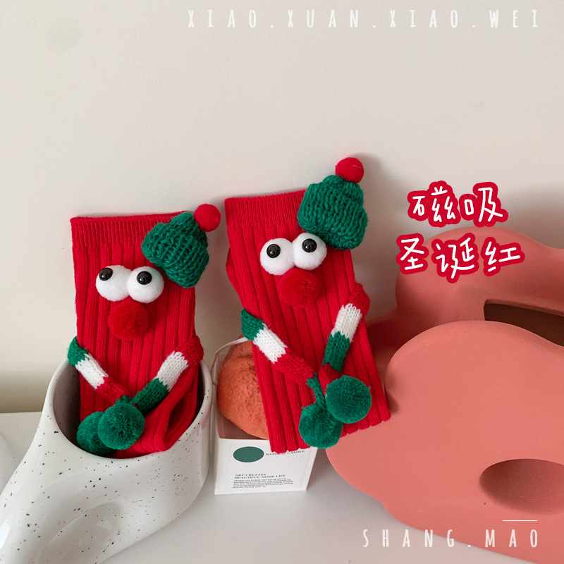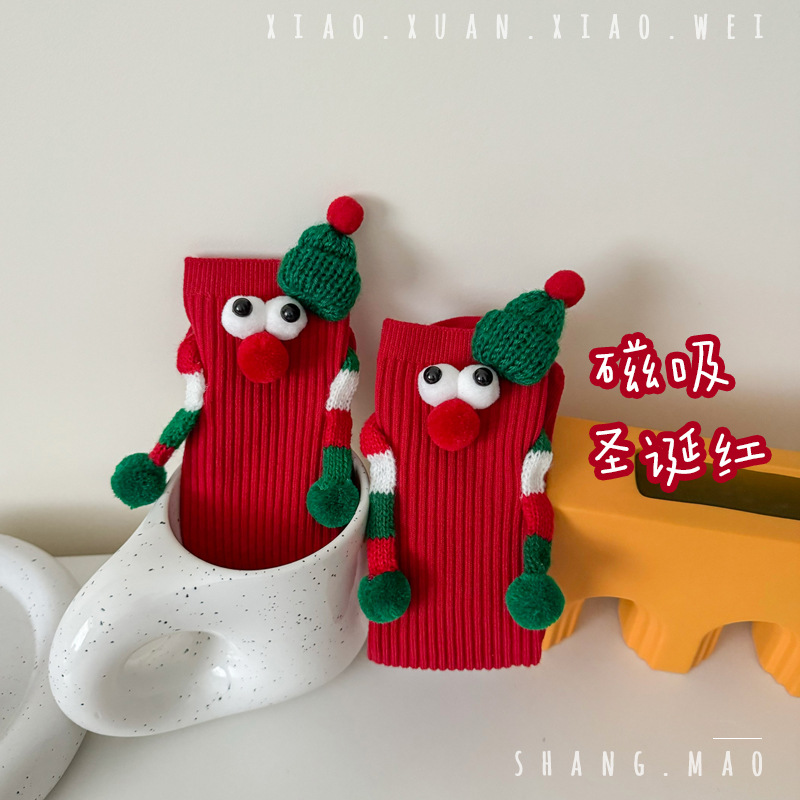어린이 새해 빨간 양말 크리스마스 선물 재미있는 귀여운 자기 양말 손으로 소년 소녀 만화 아기 중간 종아리 양말스토어 가기