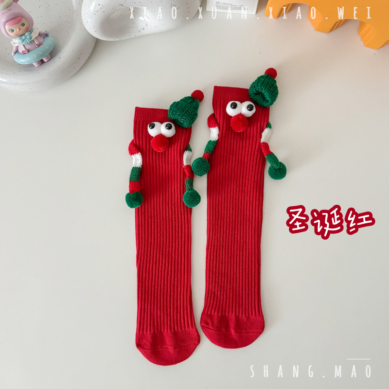 어린이 새해 빨간 양말 크리스마스 선물 재미있는 귀여운 자기 양말 손으로 소년 소녀 만화 아기 중간 종아리 양말